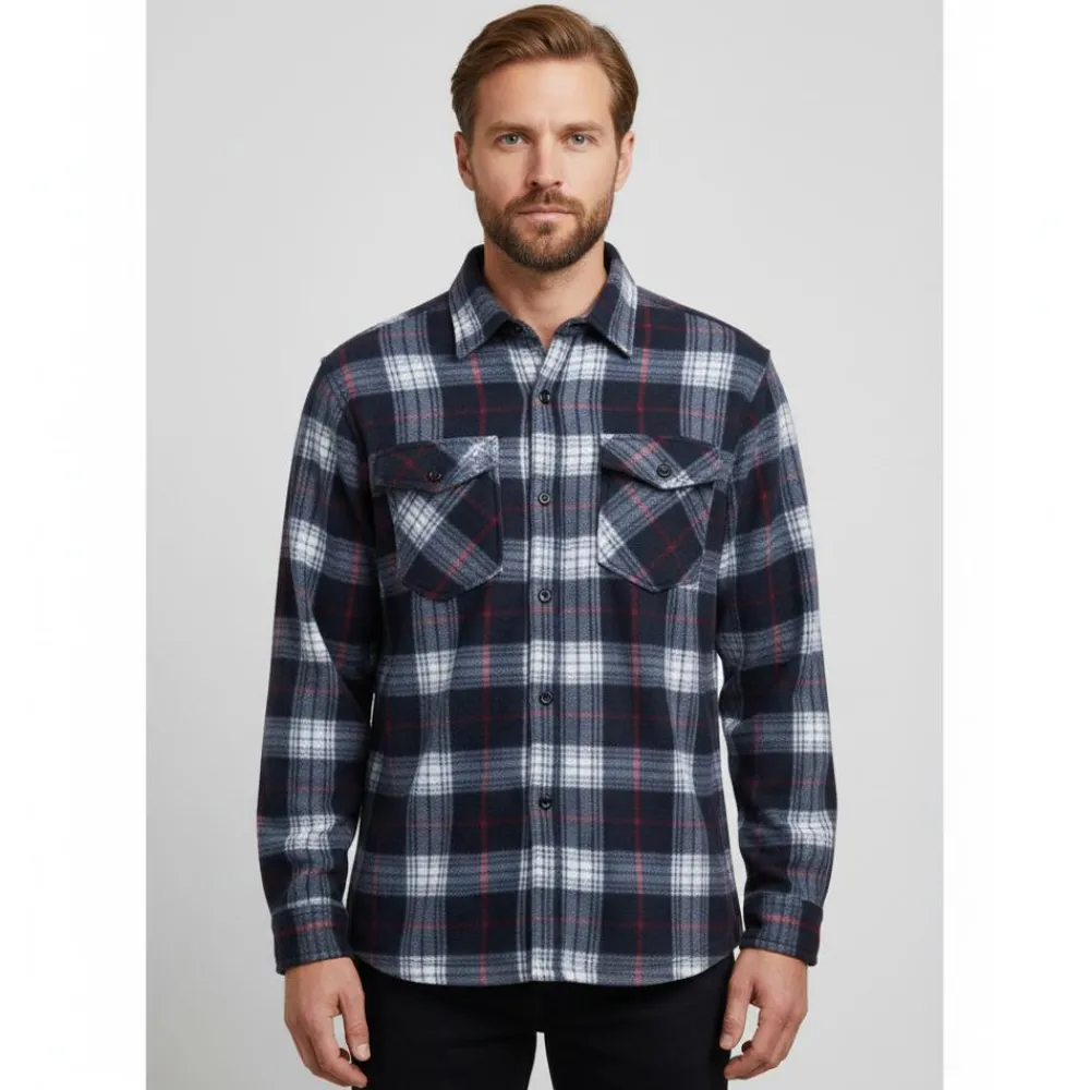 En blød og varm overdel med regulær pasform, hvor mørkeblå, hvid og fine røde linjer danner et tidløst tern. Den kan bæres åben over en undertrøje eller lukkes for et mere samlet udtryk, og den passer til alt fra afslappede weekender til uformelle arbejdsdage. Brug den som let yderlag på kølige morgener eller som lag under jakker og overtøj når temperaturen falder.