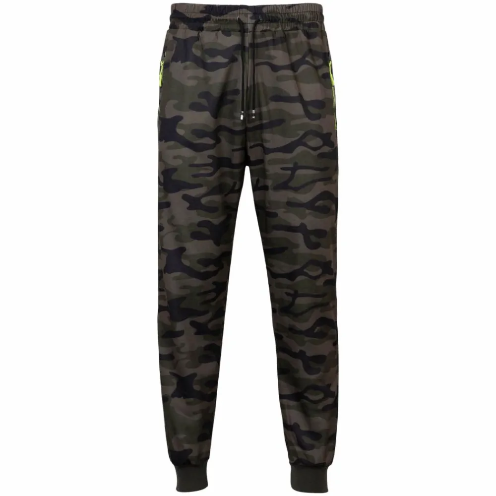 Anyway camouflagemønstret joggingbukser til herre. Bukserne har elastik og snøre i taljen, en rib kant ved anklerne, sidelommer med neongrøn lynlåslukning. Perfekt sweatbuks til hverdag og fritid.
