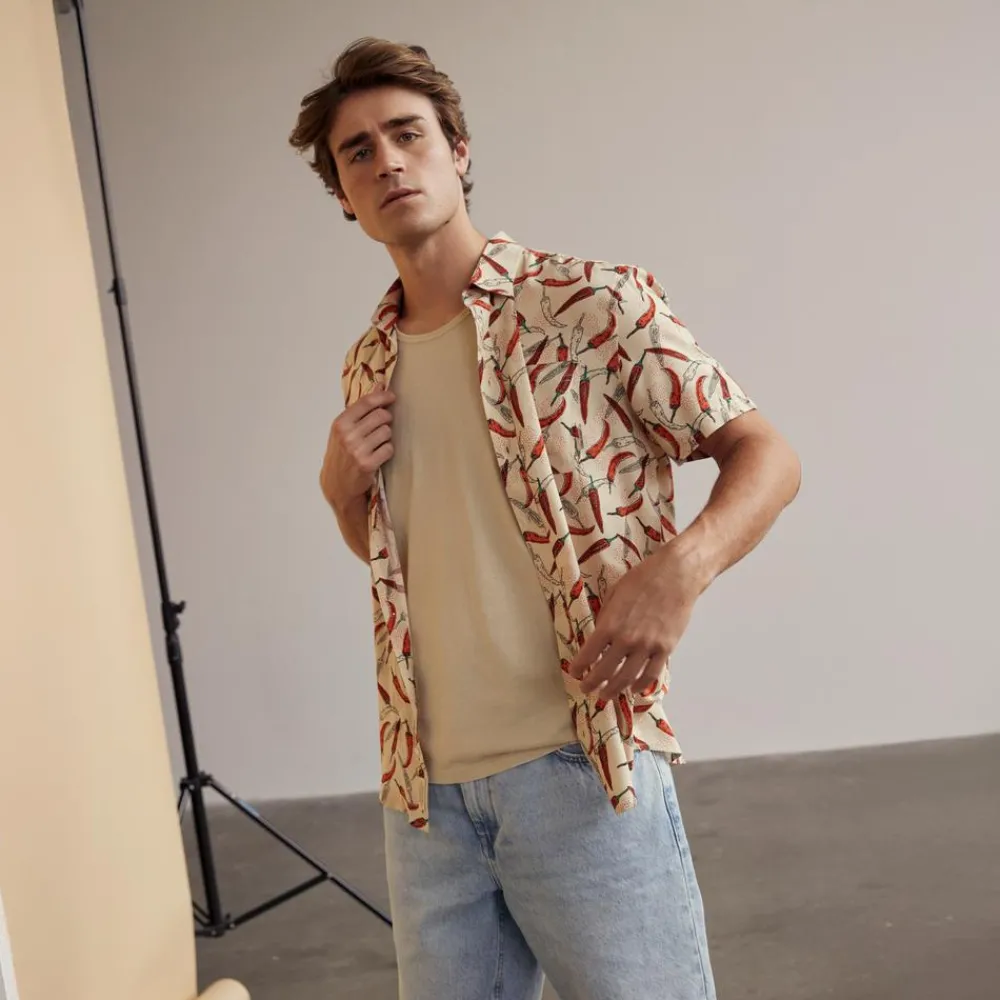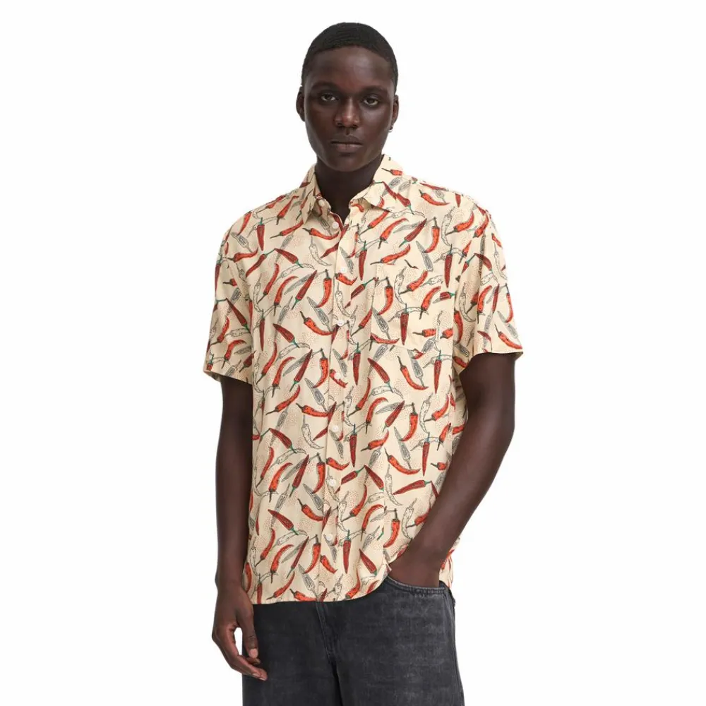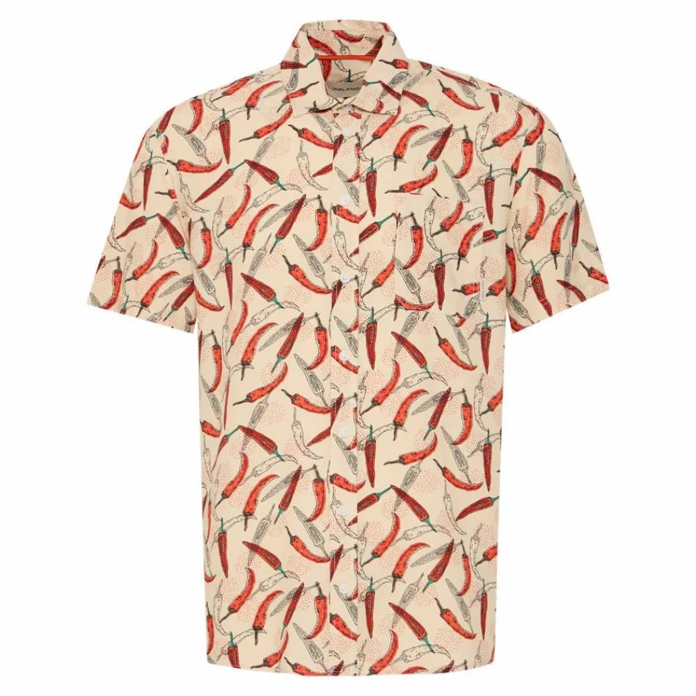 Blend kortærmet skjorte med all over print. Skjorten er fremstillet i let og luftigt materiale. Skjorten har en gennemgående knappelukning og en lomme på venstre side.