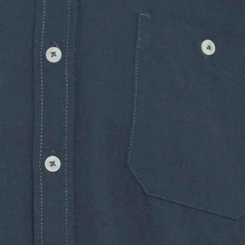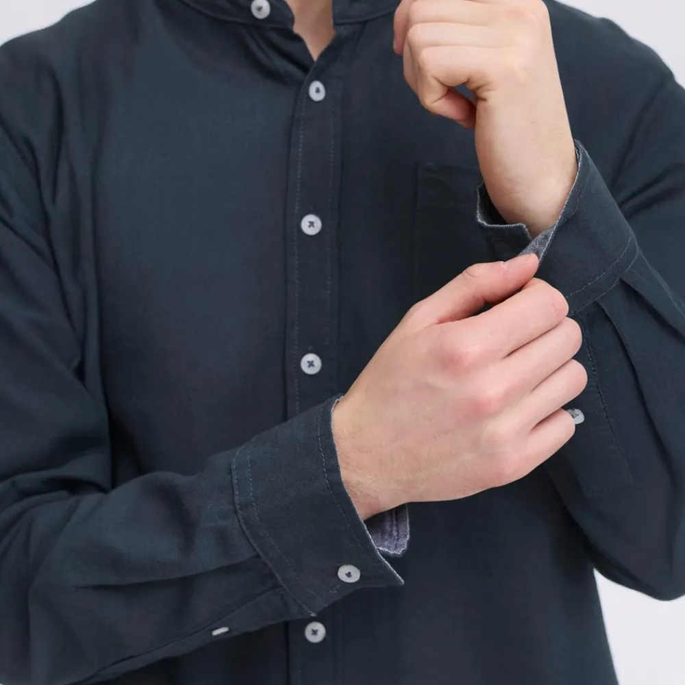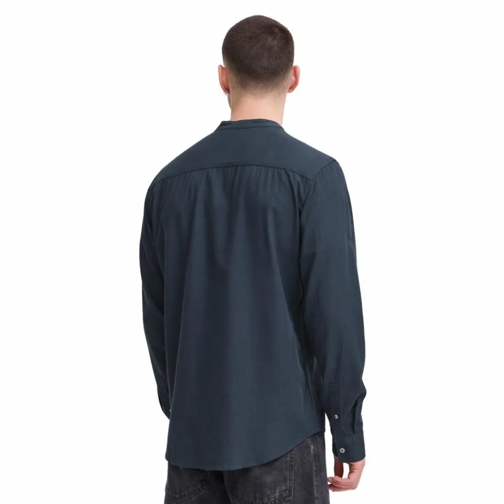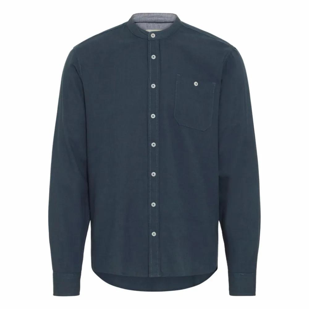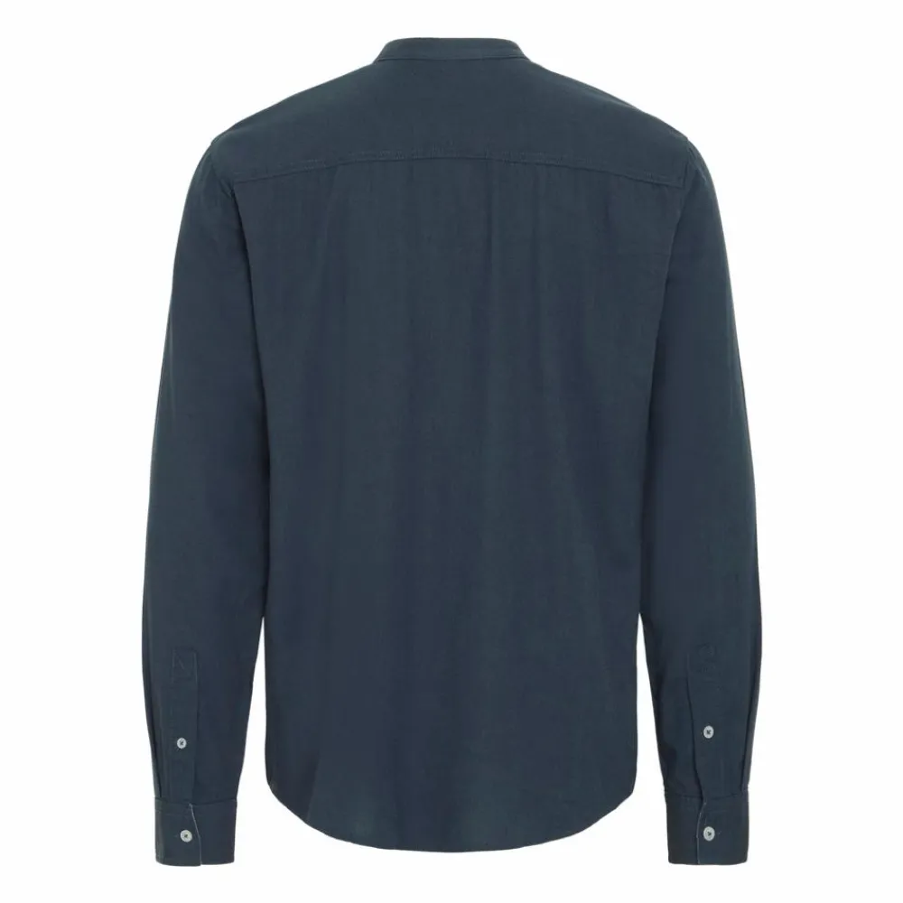Blend skjorte i hørmix med lomme på brystet. Skjorten har en kinakrave, langeærmer og hvide knapper ned langs trøjen.