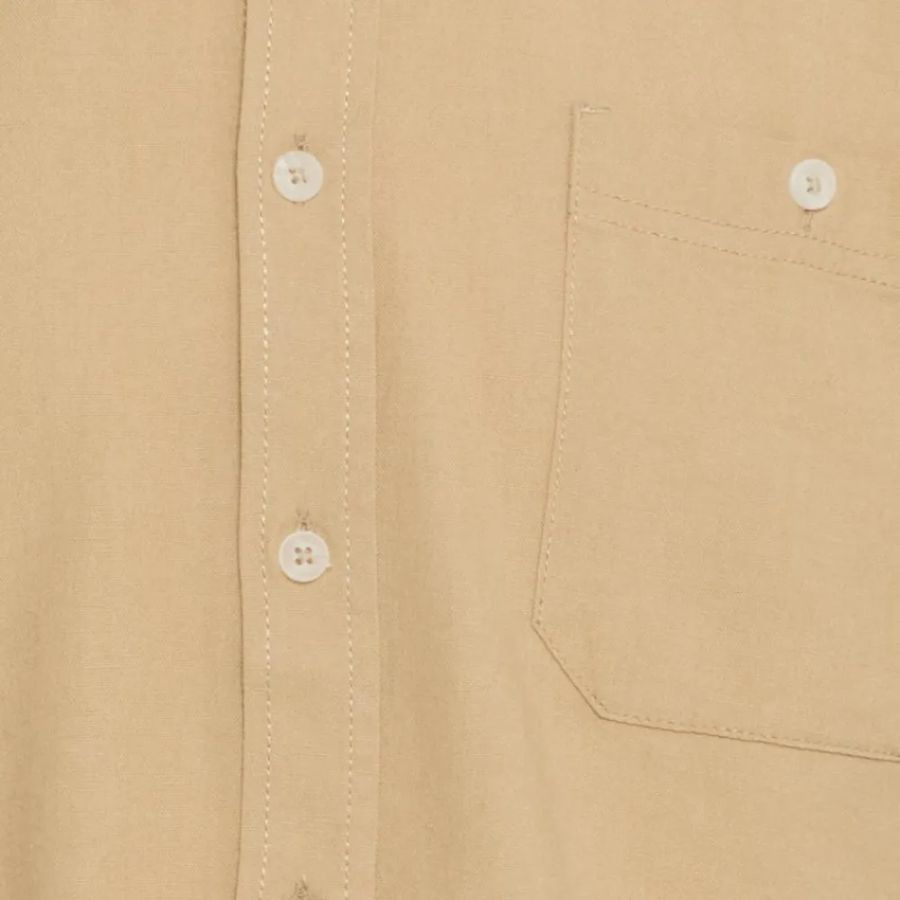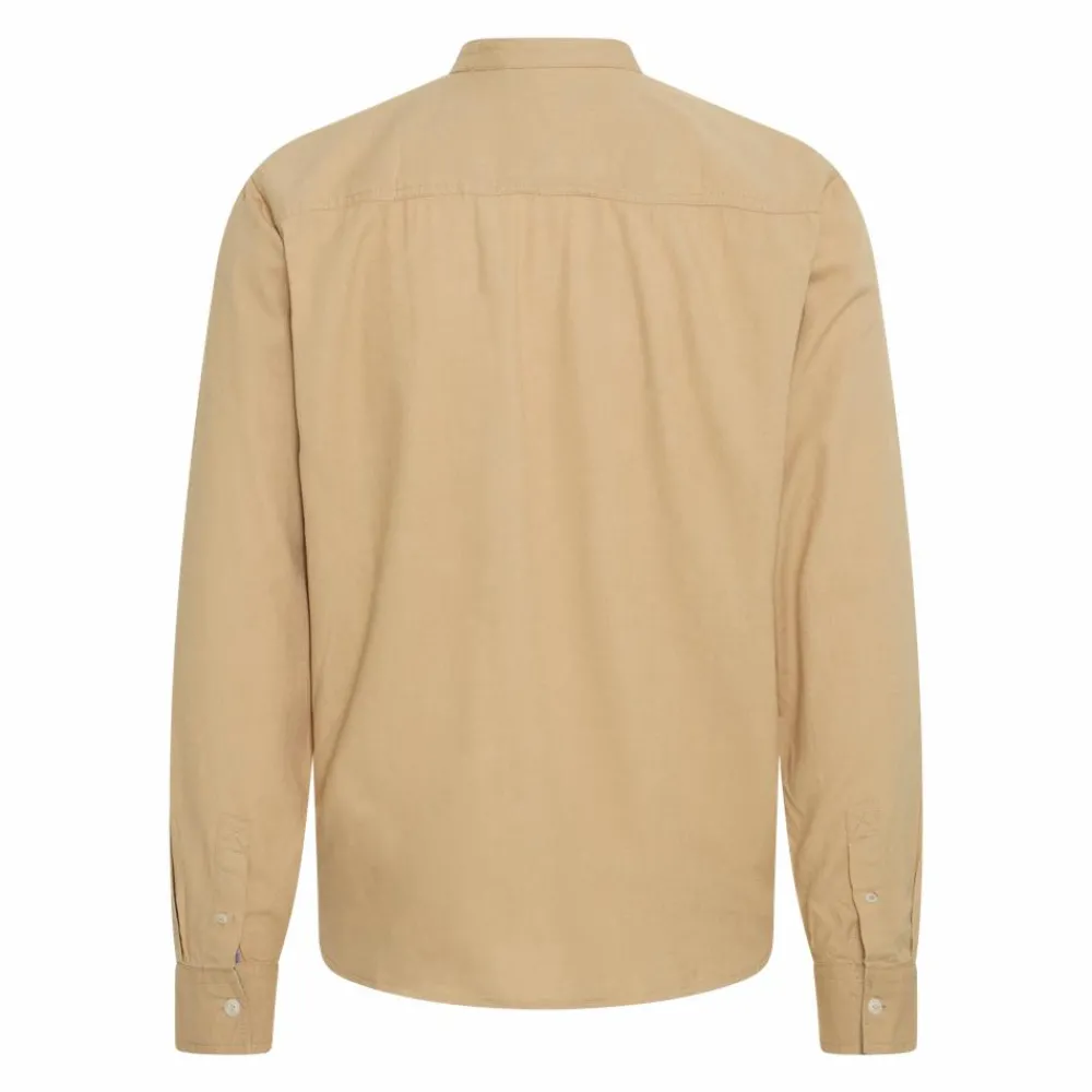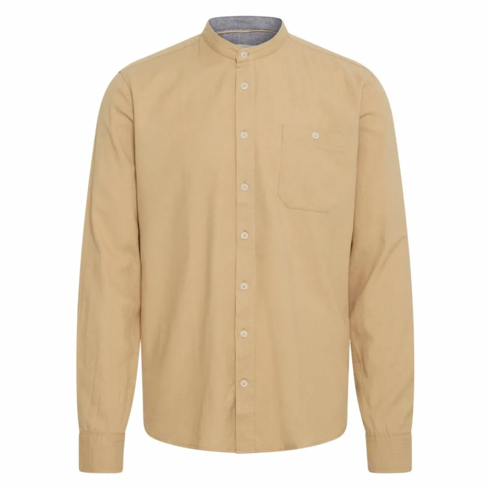 Blend skjorte i hørmix med lomme på brystet. Skjorten har en kinakrave, langeærmer og hvide knapper ned langs trøjen.