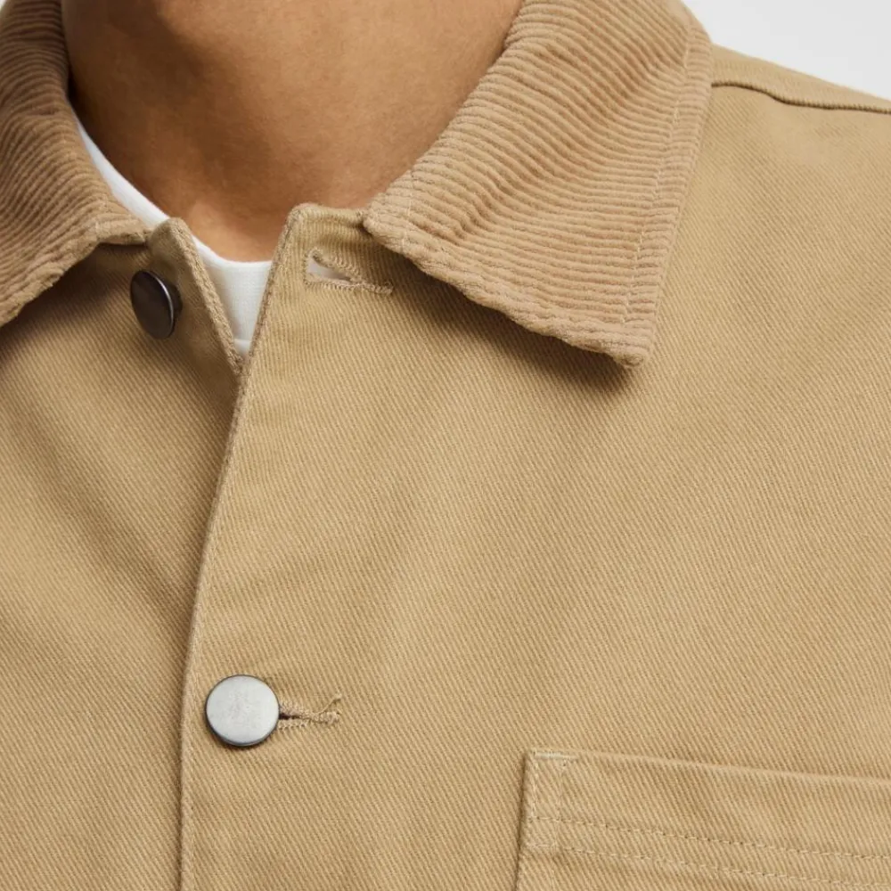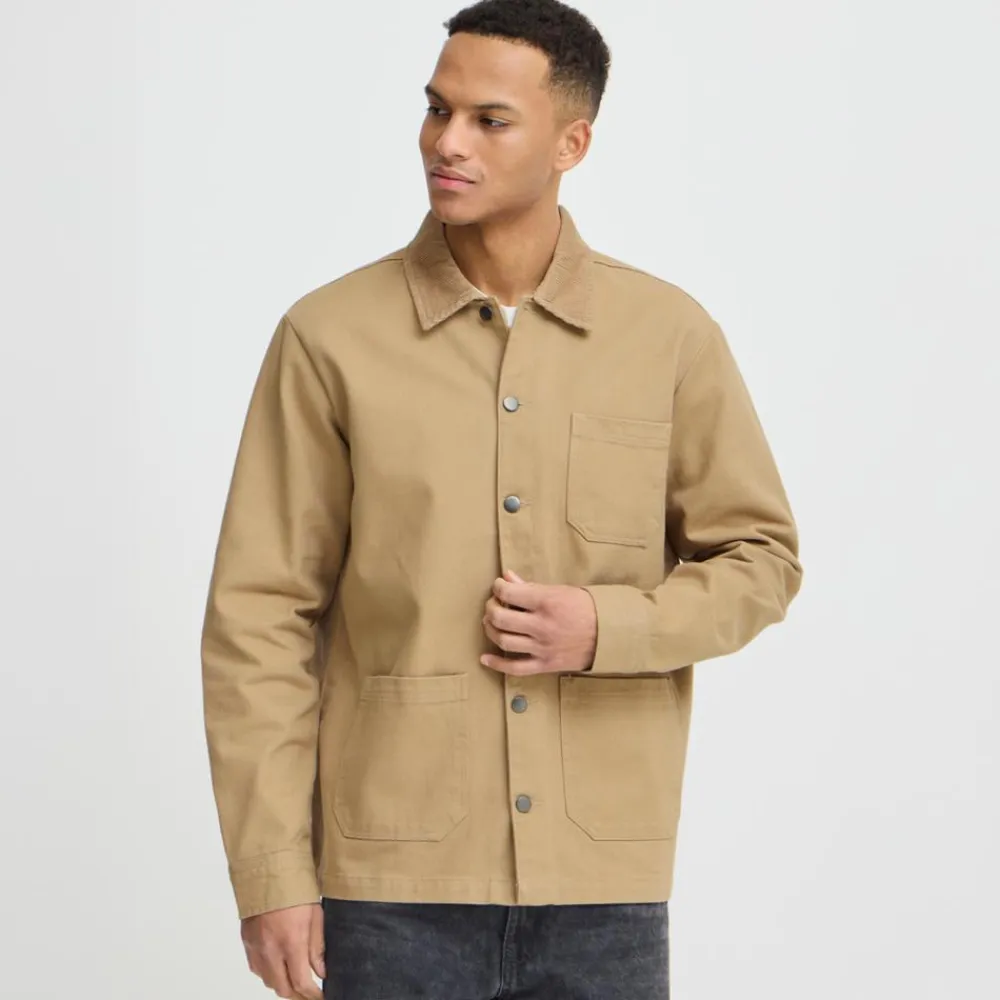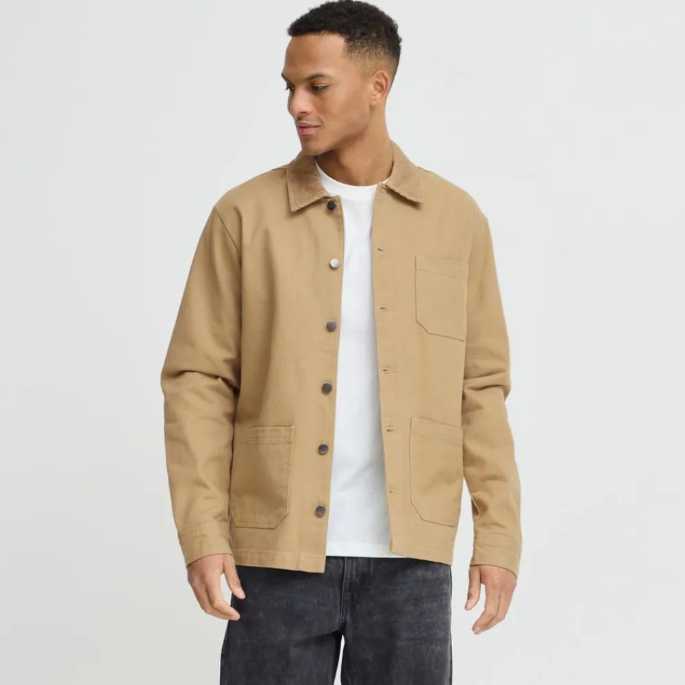 Blend herre overgangsjakke med gennemgående knappelukning. Den trendy jakke har tre åbne lommer på fronten og knaplukning ved håndled. Den solide ensfarvede herrejakke er designet med en flot fløjlskrave. Her får du en kvalitetsjakke i et solidt materiale, med et moderne oversized look, som passer godt til både afslappet hverdagsbrug og det mere festlige outfit. Jakken er særdeles velegnet til brug i forår, – sommer og efterårssæsonen.