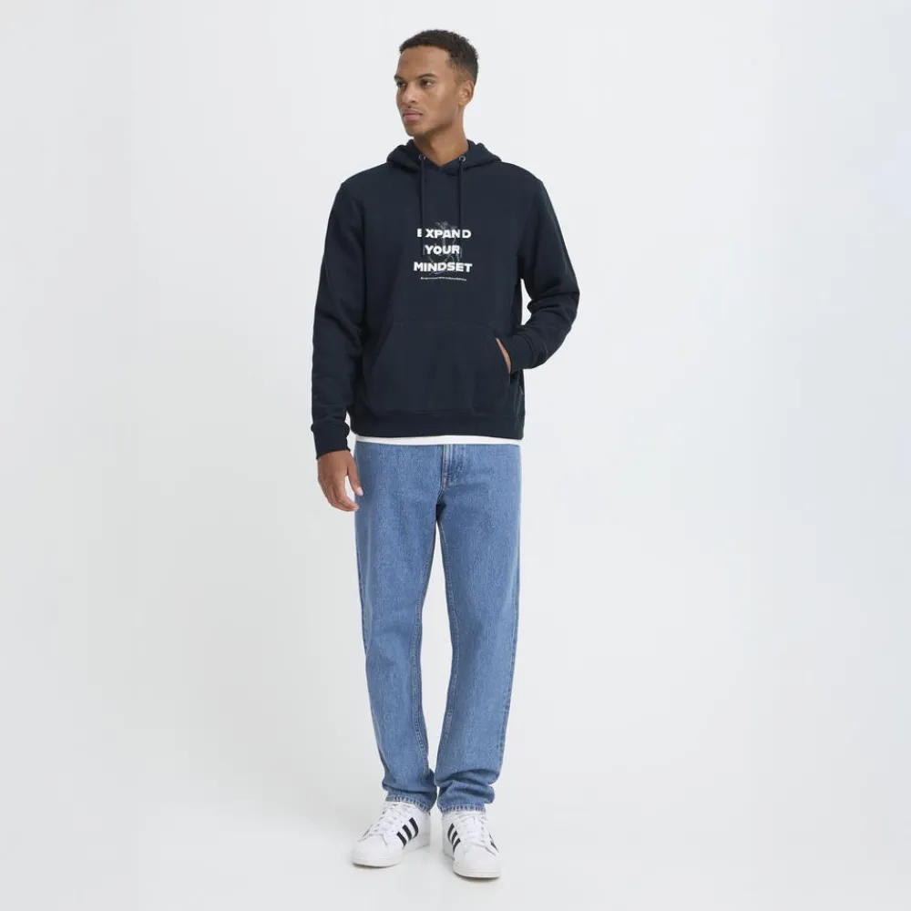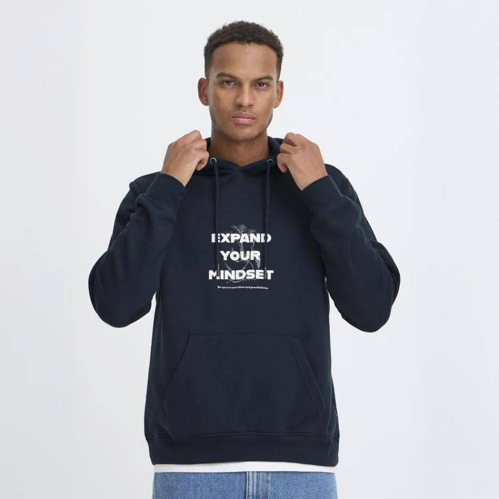 Blend hættetrøje med print til herre. Hættetrøjen har en blød, børstet inderside, kængurulomme, justerbar hætte samt ribkant i ærmer og bunden. En flot hoodie med en komfortabel og afslappet pasform.
