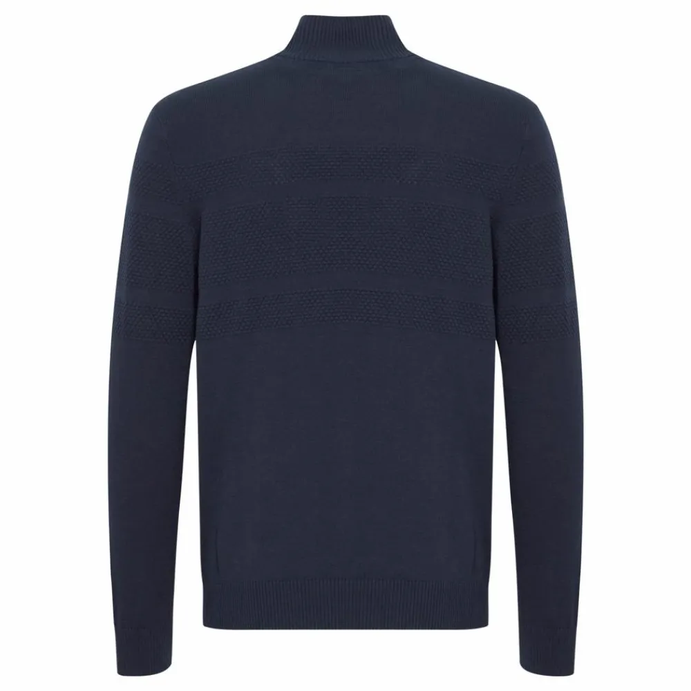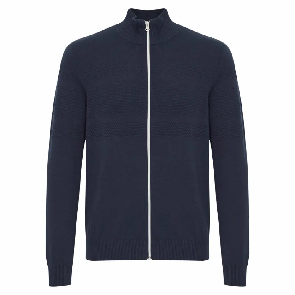 Langærmet herre strikcardigan med struktur, høj krave og gennemgående lynlåslukning.