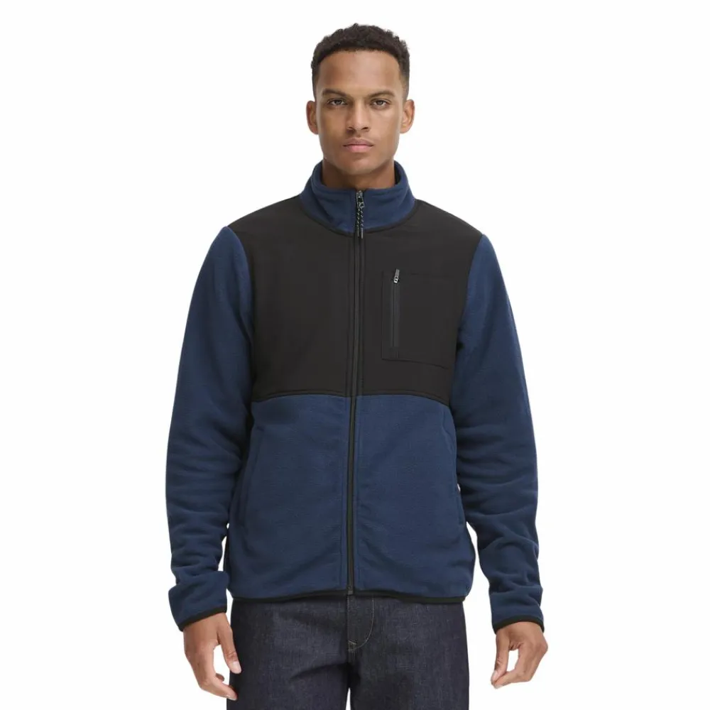 Blend herre cardigan i fleece. Denne fleece cardigan er varm, komfortabel og har et moderne design. Cardiganen har en høj hals, en gennemgående lynlås og en praktisk lynlåslomme på brystet, samt to side lommer.