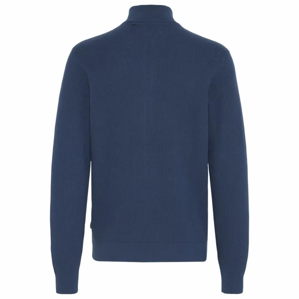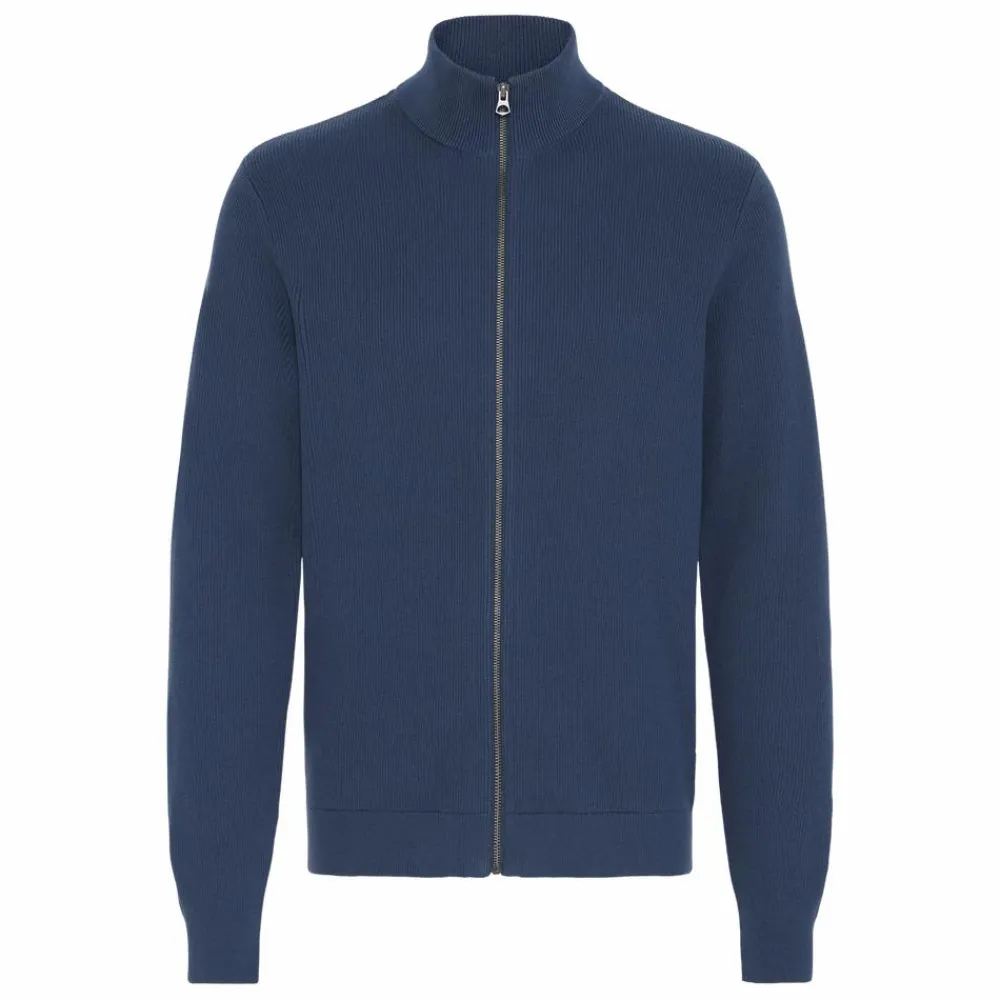 Blend strik cardigan til herre. Cardiganen er stikket i smal rib, har en høj hals og en gennemgående lynlås. Cardiganen er lavet i en strækbar bomulds kvalitet, der sikrer en god og behagelig pasform.