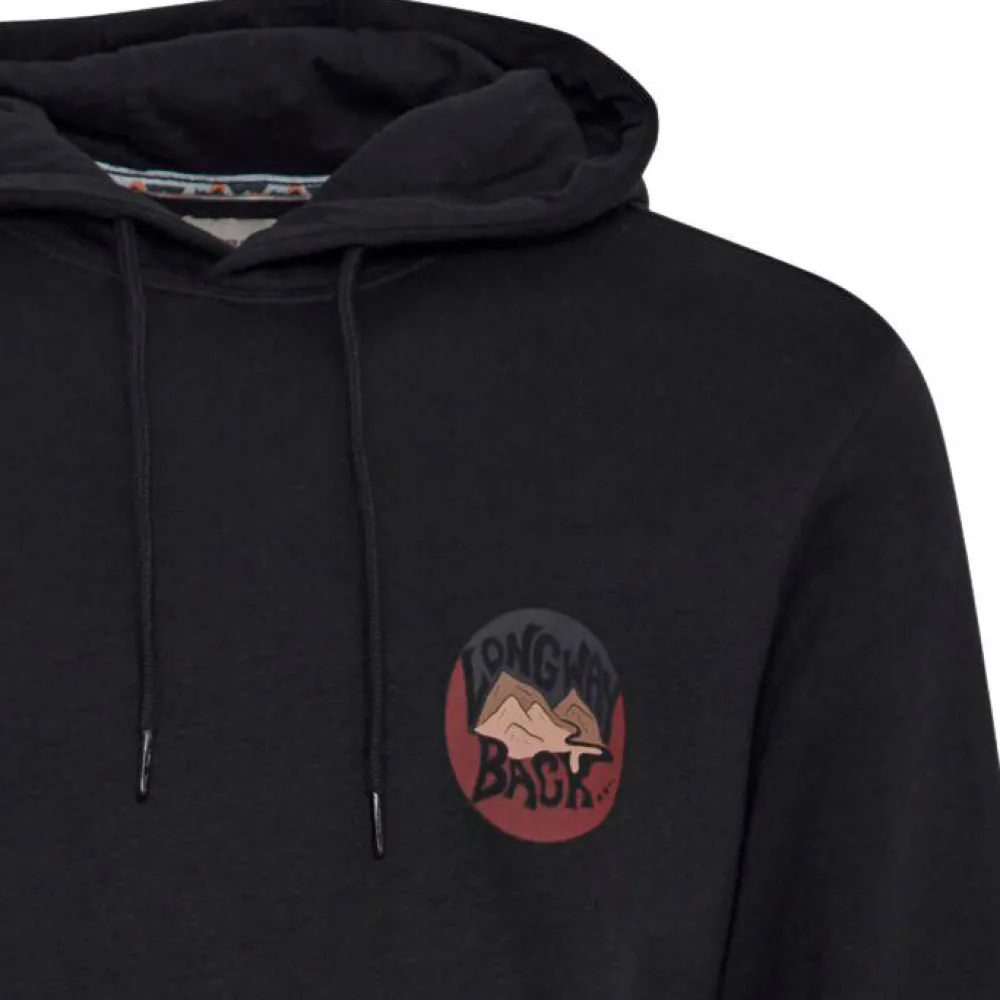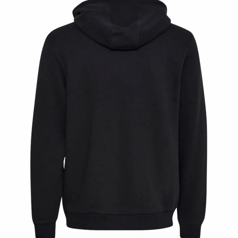 Blend hættetrøje i ensfarvet sort med motiv print og kængurulomme på fronten.