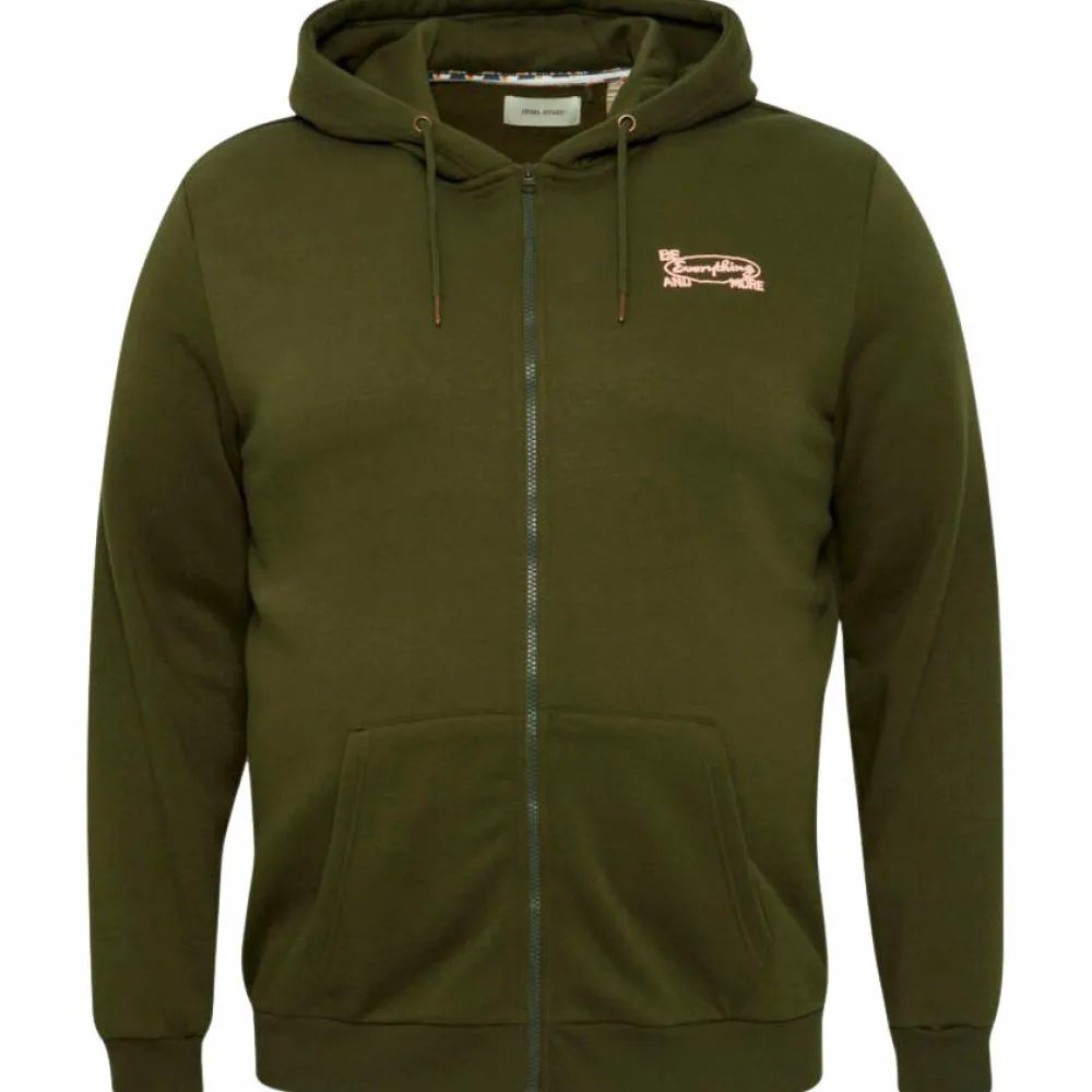 Blend plus size hættetrøje med gennemgående lynlåslukning. Trøjen har ribkant i ærmer og bunden af trøjen samt kængurulomme.