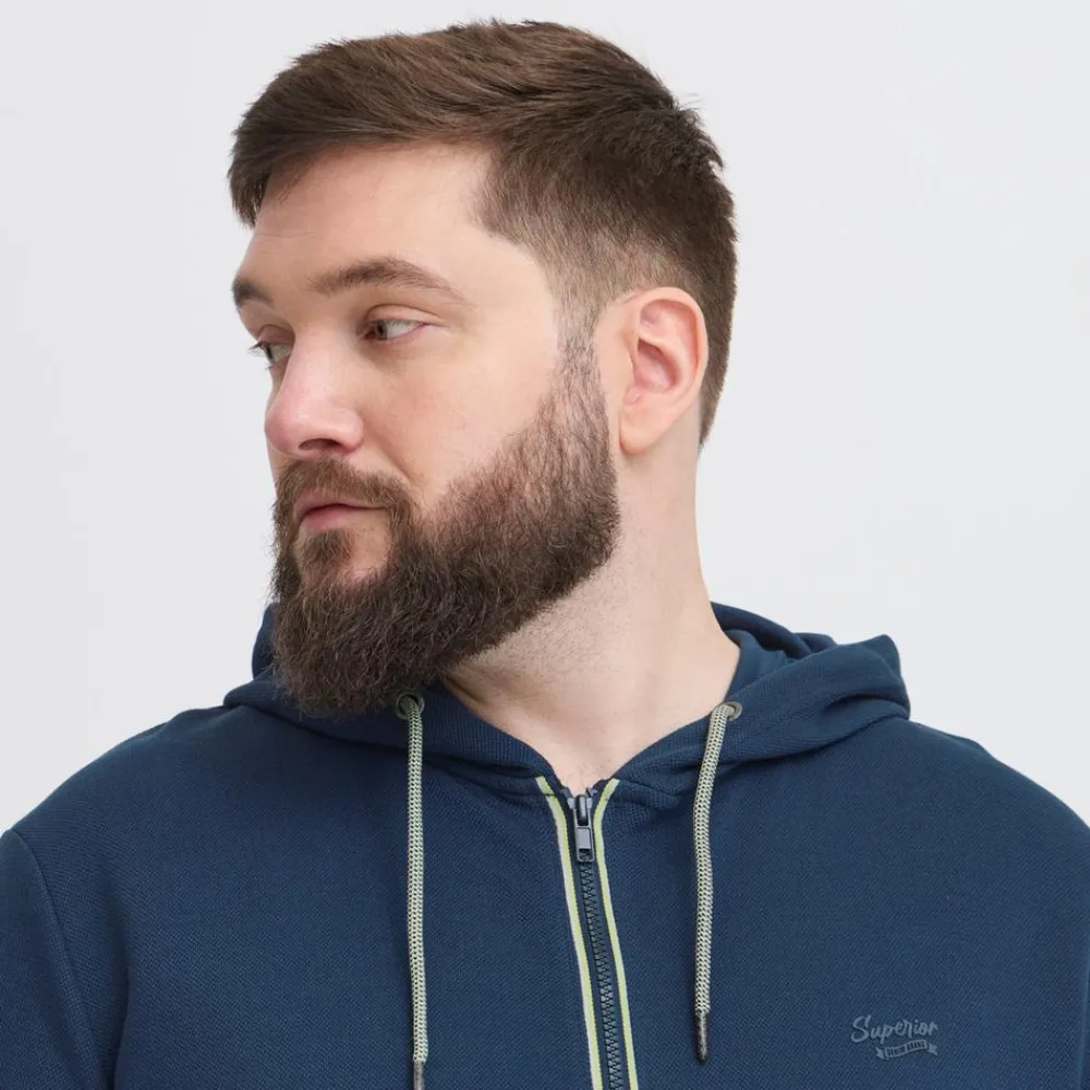 Blend herre plus size cardigan med hætte i et klassisk og flot design. Hættetrøjen har et fint og diskret logo på frontens venstre side. Herretrøjen har to sidelommer og ribkant ved håndled og talje.