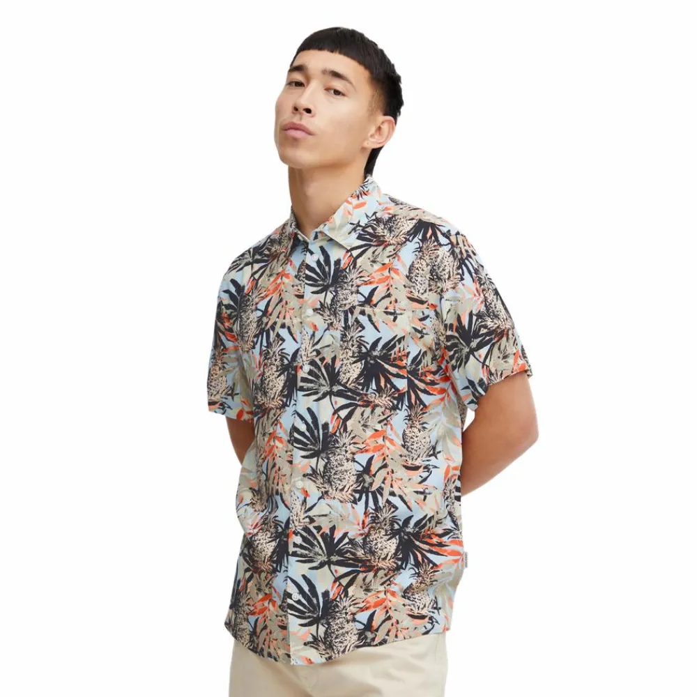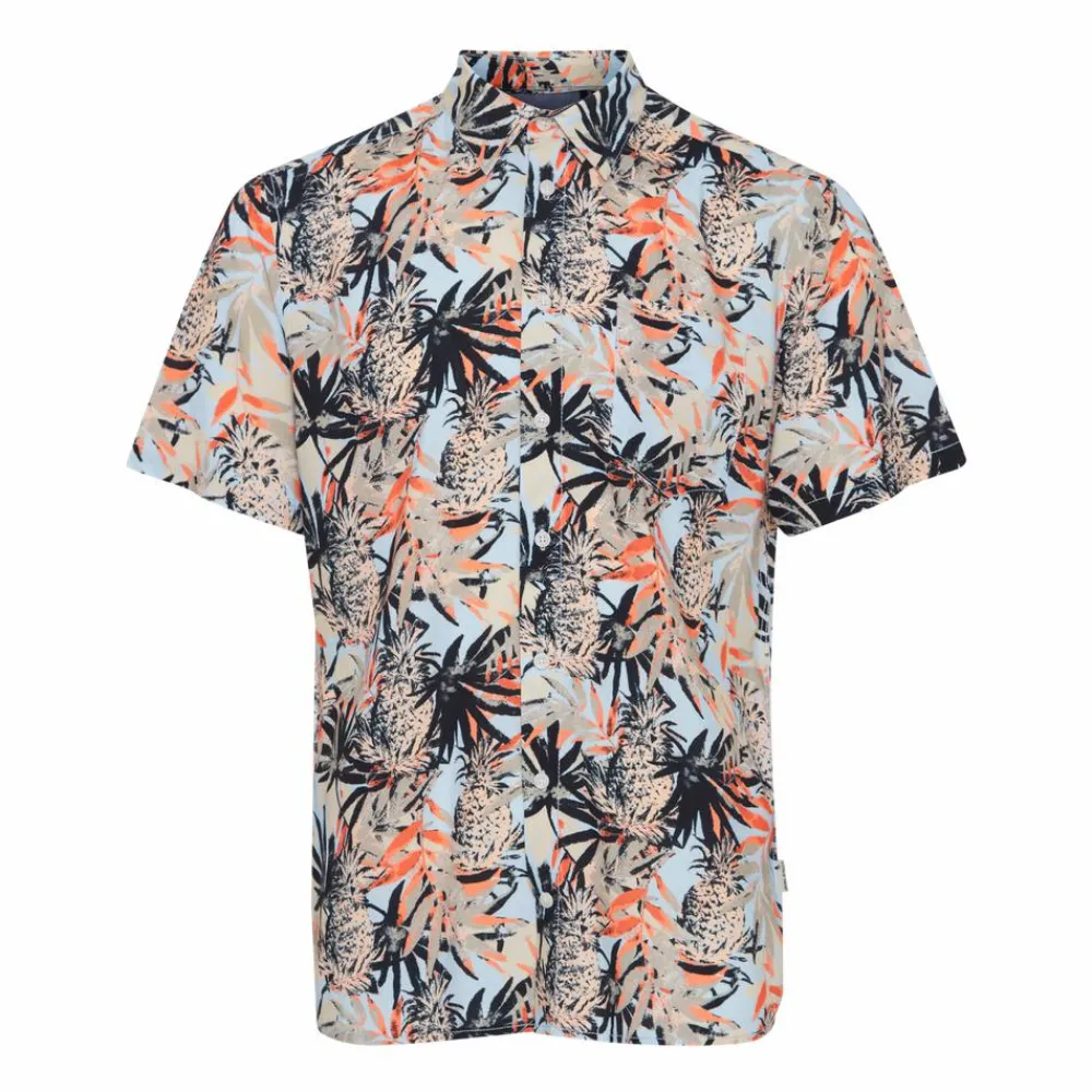 Blend herre kortærmet viskose skjorte med all-over print, gennemgående knaplukning, brystlomme samt krave.