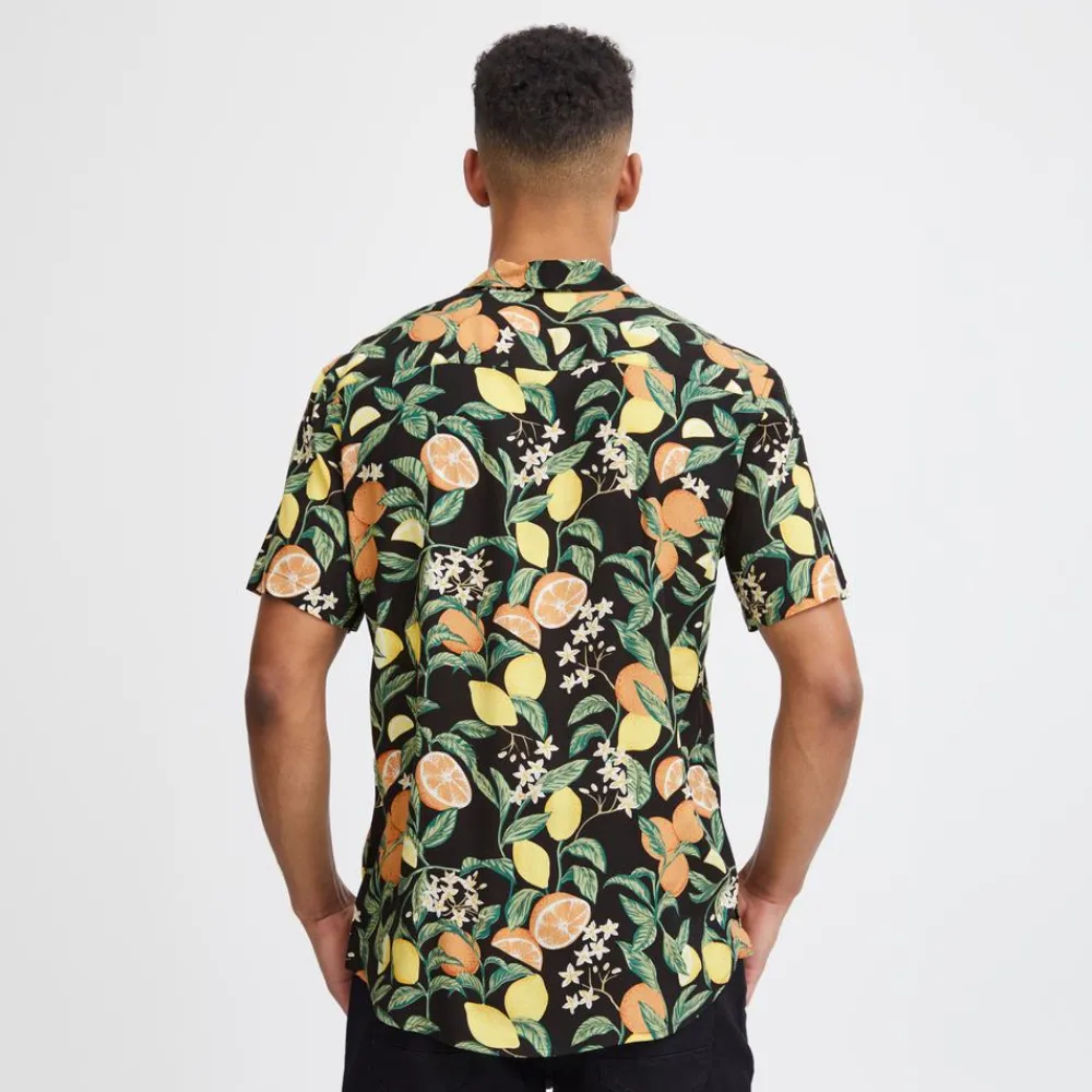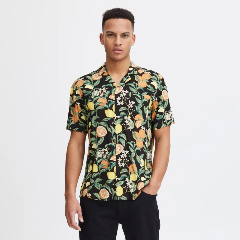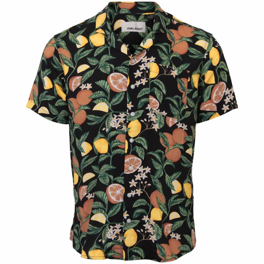 Blend herre skjorte i let og luftig viskose kvalitet. Med korte ærmer, all-over print, gennemgående knaplukning samt krave.