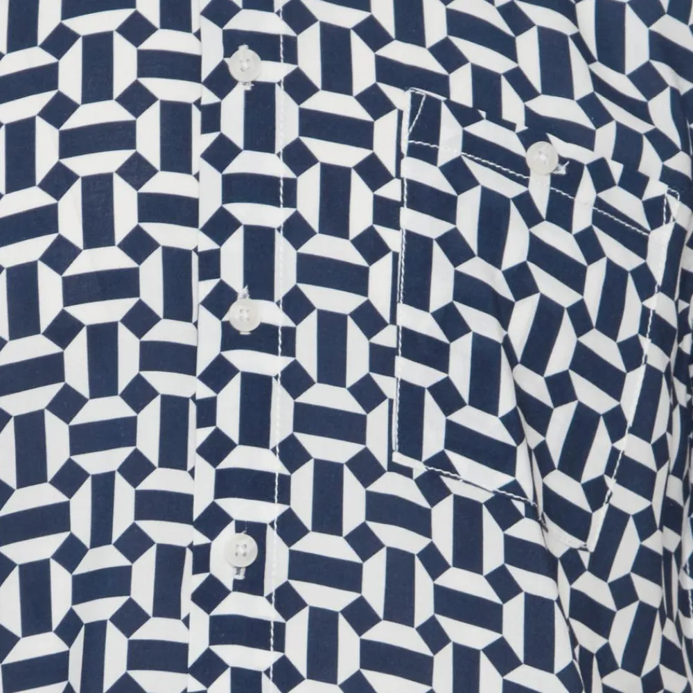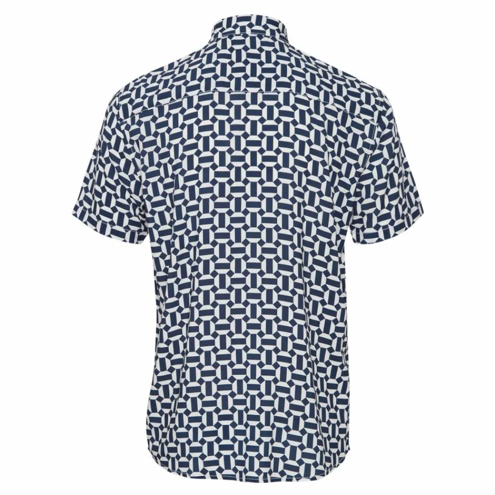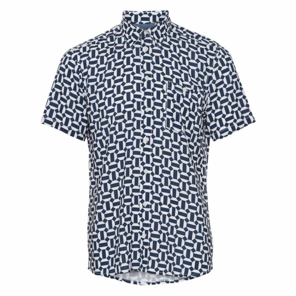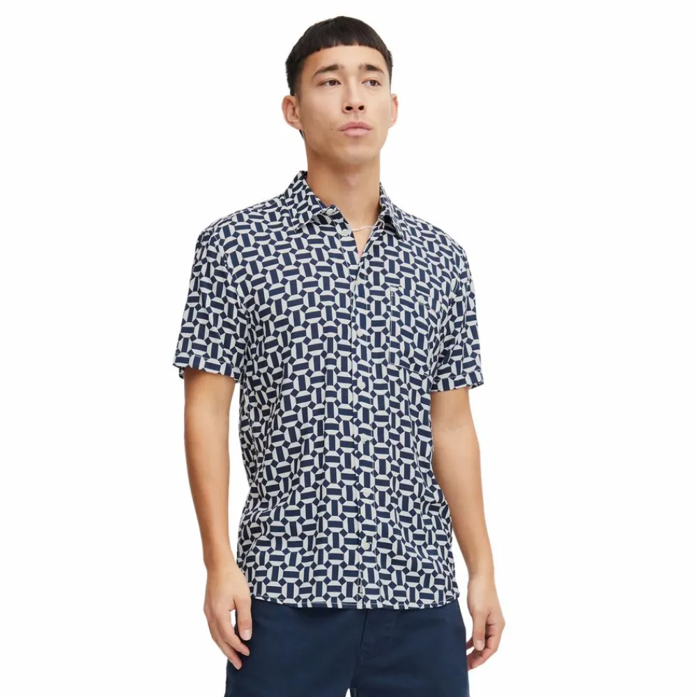Blend herre kortærmet viskose skjorte med all-over print, gennemgående knaplukning, brystlomme samt krave.