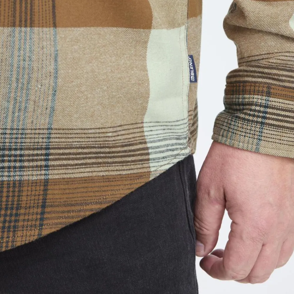 Blend plus-size skovmandsskjorte i blød flannel. Skjorten har en gennemgående knappelukning samt to knapper i kraven og ved ærmeåbning.