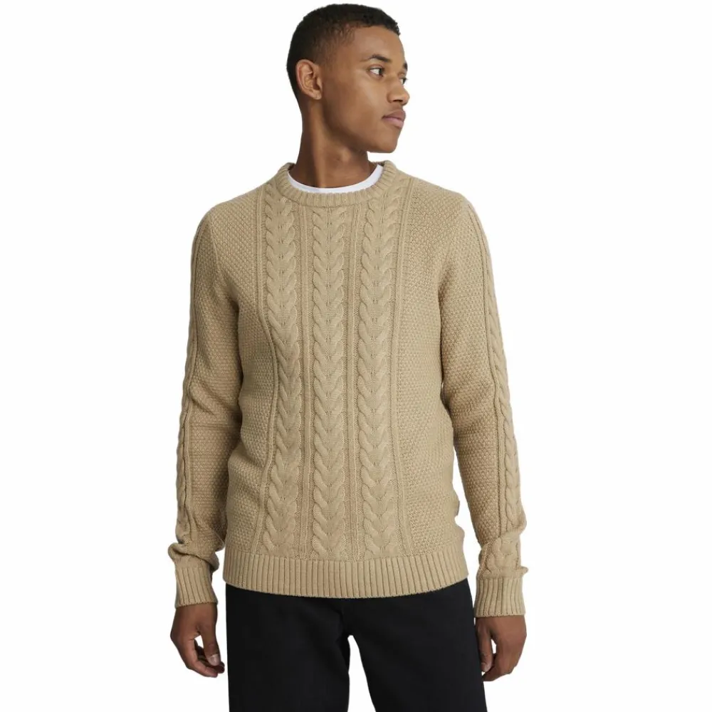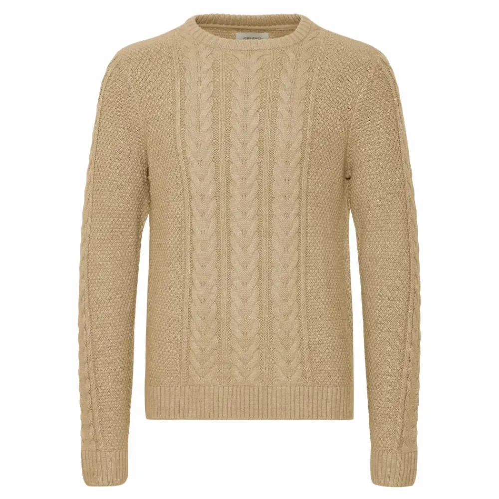 Blend kabelstrik til herre. Klassisk striktrøje med rund halsudskæring og flot struktur. Ribkanterne på ærmer, hals og bund sikrer en komfortabel pasform. Perfekt til hverdagsbrug og styles nemt med jeans eller chinos.