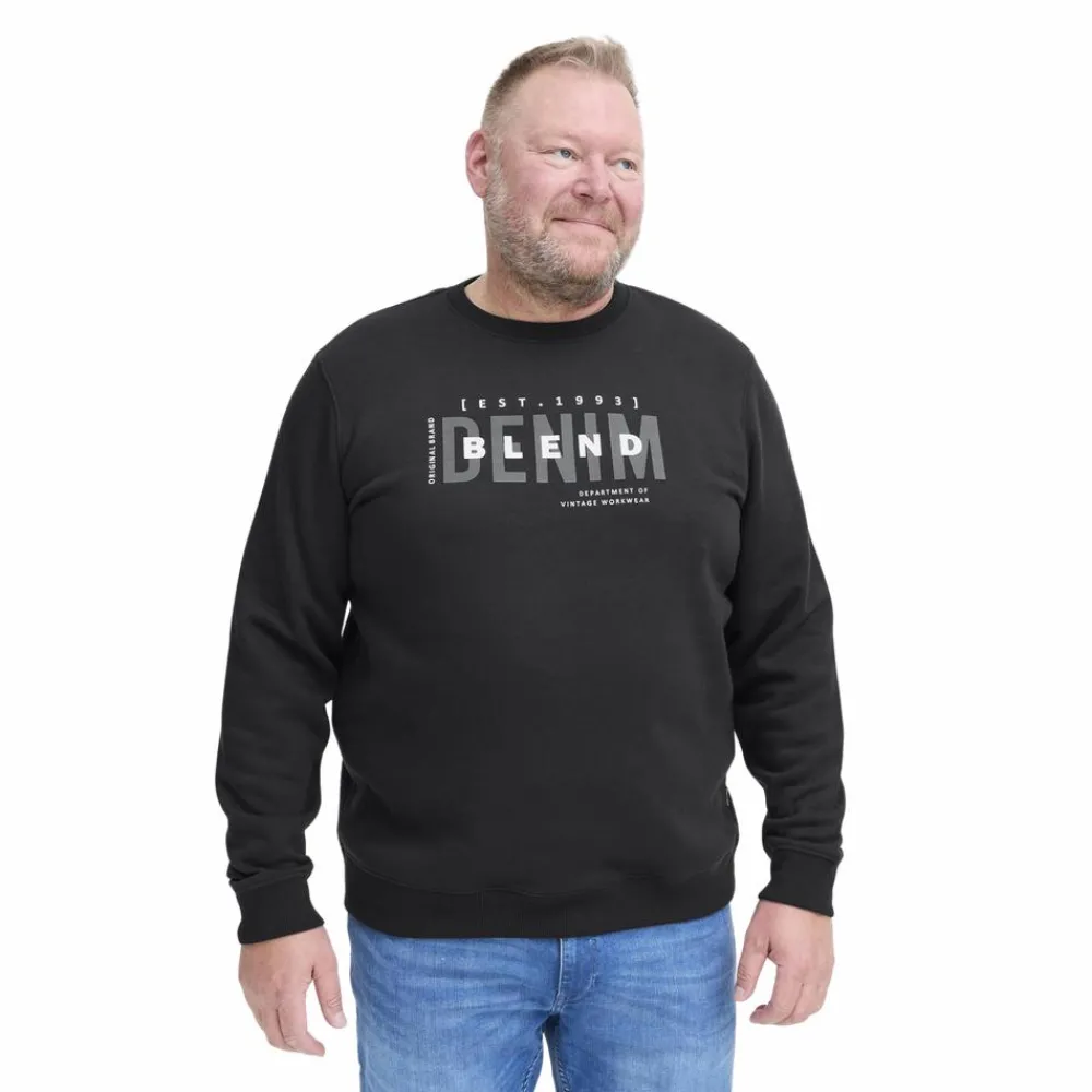 Blend herre plus-size sweatshirt med print. Sweatshirten er blød med en børstet inderside Den har en rund halsudskæring med rib, samt ved talje og ærmeåbning. En lækker og komfortabel sweatshirt, som er let at style med eksempelvis jeans, sweatpants eller chinos.