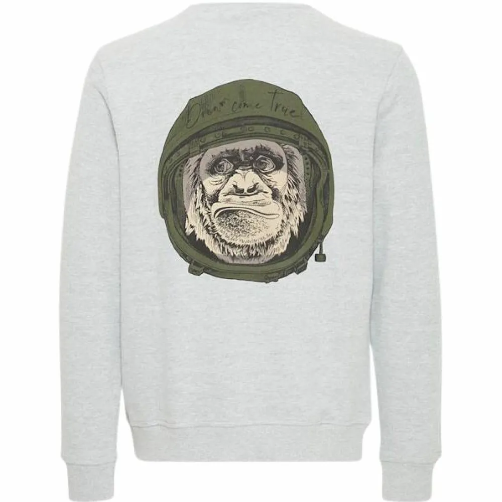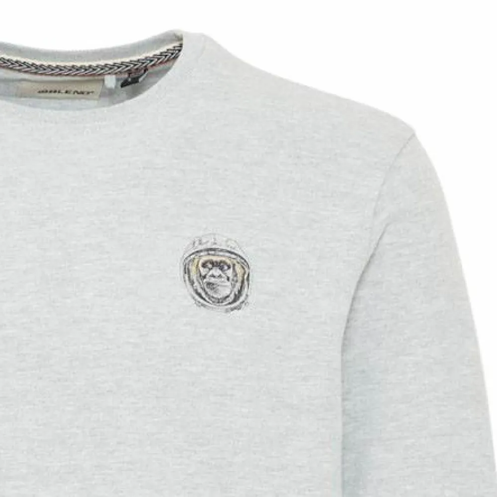 Blend herre sweatshirt med print på fronten og ryggen. Trøjen har rund halsudskæring samt ribkant ved hals, ærmer og bund.