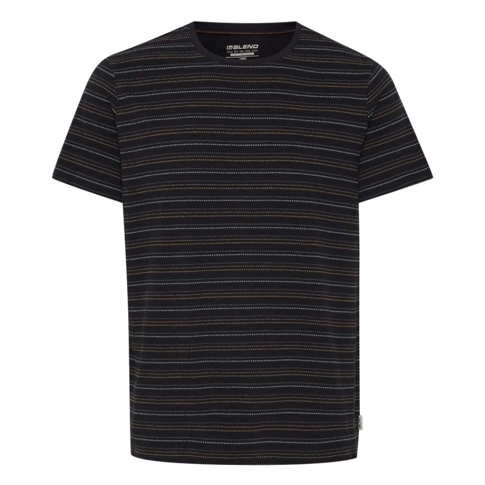 Blend herre t-shirt. Smart t-shirt til mænd, med smart gennemgående striber. T-shirten har rund halsudskæring, med en lille ribkant om halsen.