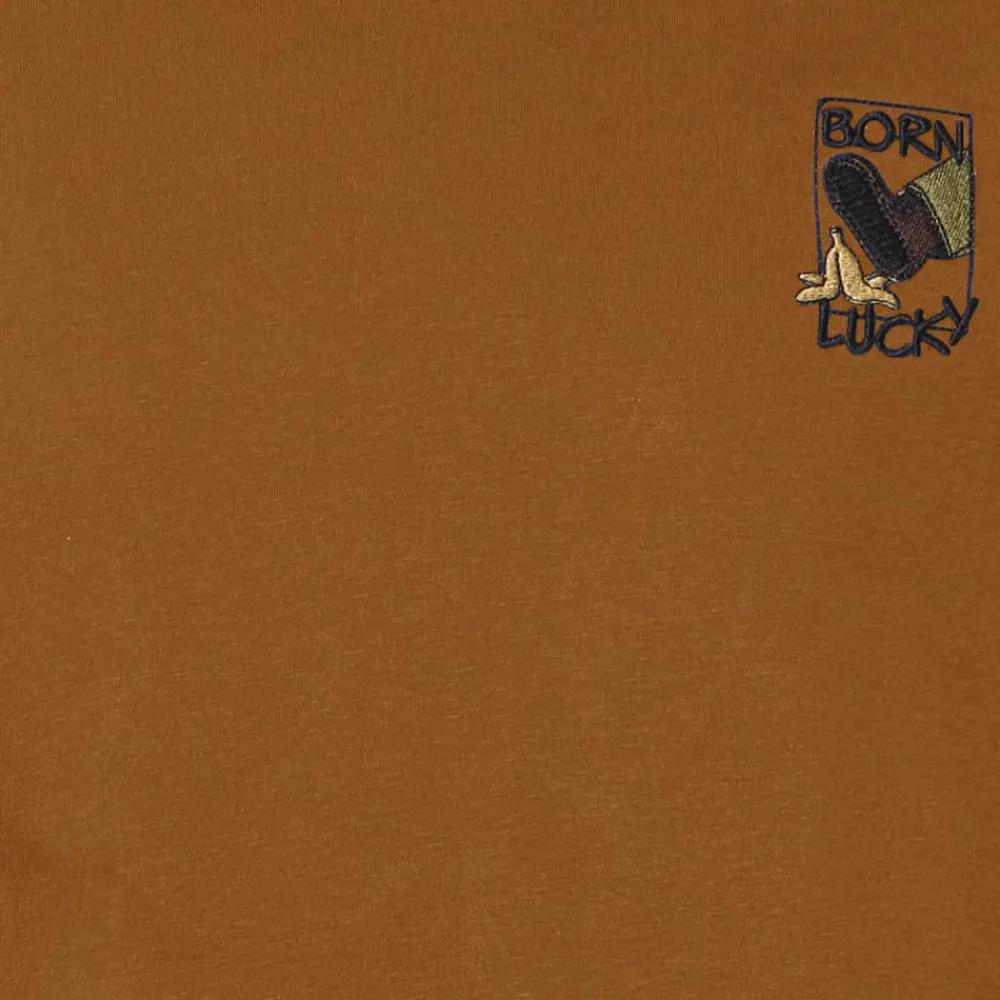 Blend ensfarvet t-shirt med rund halsudskæring samt “BORN LUCKY” brodering på brystet.