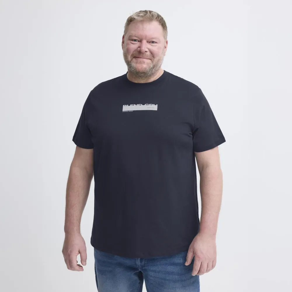 Denne herre t-shirt er lavet i 100% bomuld og kommer i farven salute, en mørk marineblå tone, der passer til det meste. Den har rund hals, korte ærmer og en afslappet pasform, der føles behagelig hele dagen. Brug den alene eller som base under en overskjorte eller sweatshirt, og se flere muligheder i t-shirts og tanktops.