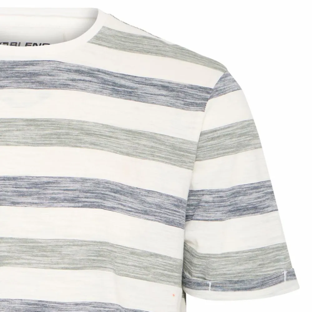 Blend t-shirt med flerfarvet striber. T-shirten har en klassisk rund hals og korte ærmer. T-shirten er fremstillet i en blød og behagelig bomuldskvalitet, som sikrer god komfort hele dagen.