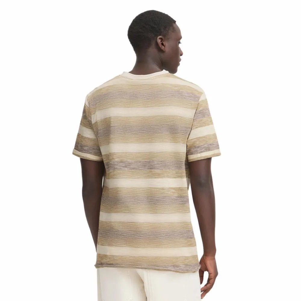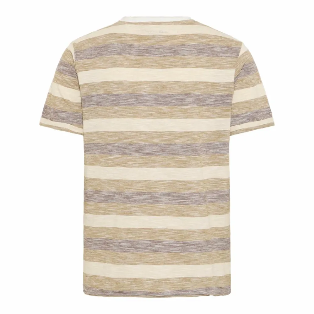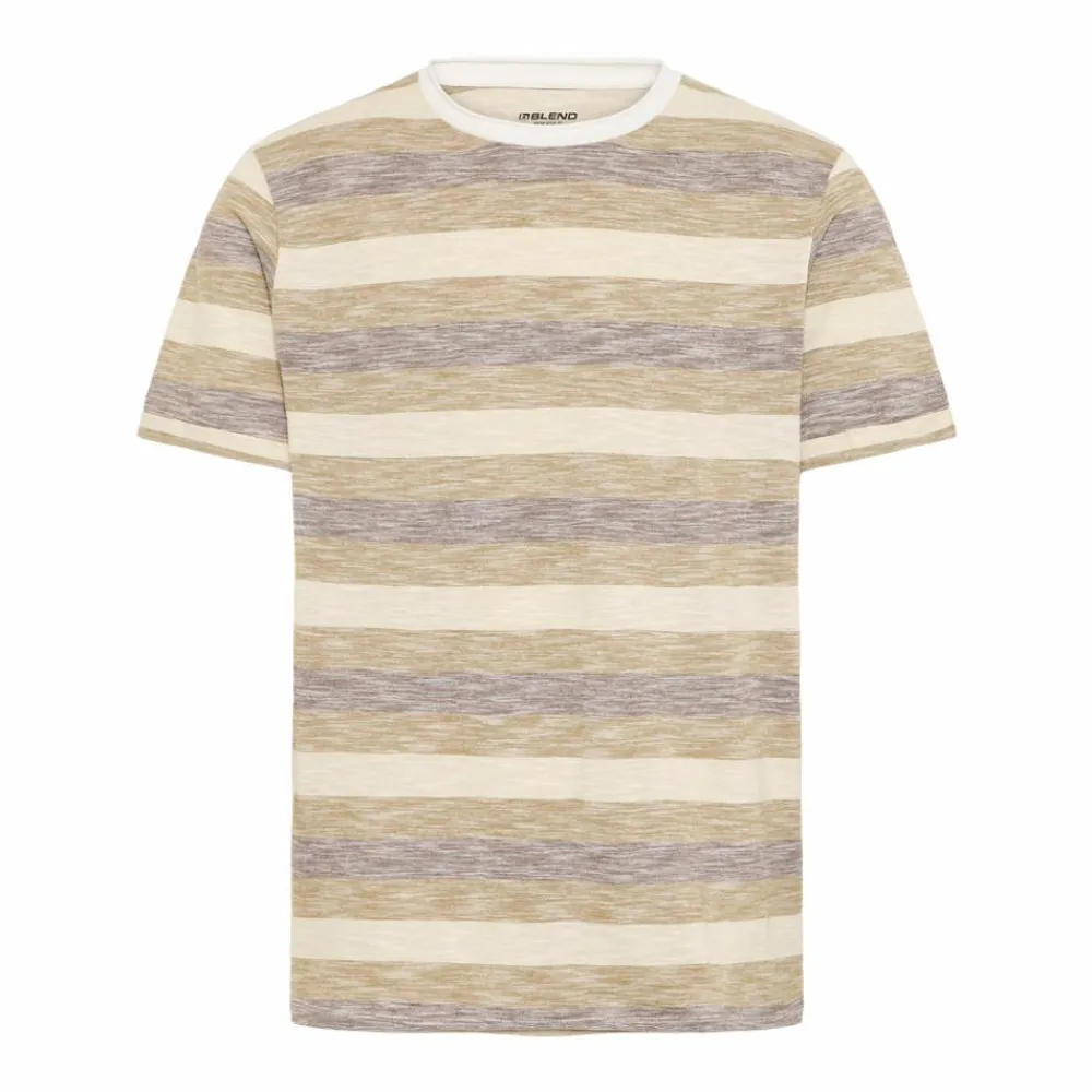 Blend t-shirt med flerfarvet striber. T-shirten har en klassisk rund hals og korte ærmer. T-shirten er fremstillet i en blød og behagelig bomuldskvalitet, som sikrer god komfort hele dagen.
