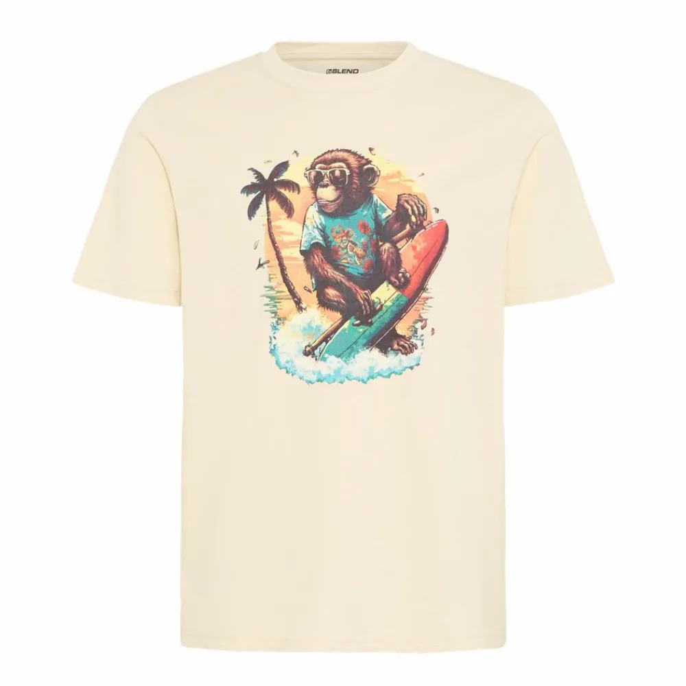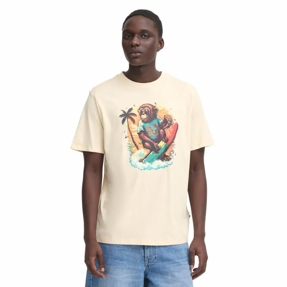 Blend herre t-shirt med print på fronten. T-shirten har en klassisk rund hals og korte ærmer. T-shirten er fremstillet i en blød og behagelig bomuldskvalitet, som sikrer god komfort hele dagen.