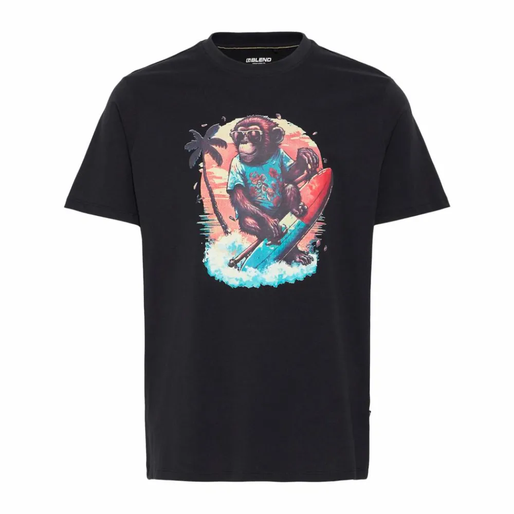 Blend herre t-shirt med print på fronten. T-shirten har en klassisk rund hals og korte ærmer. T-shirten er fremstillet i en blød og behagelig bomuldskvalitet, som sikrer god komfort hele dagen.