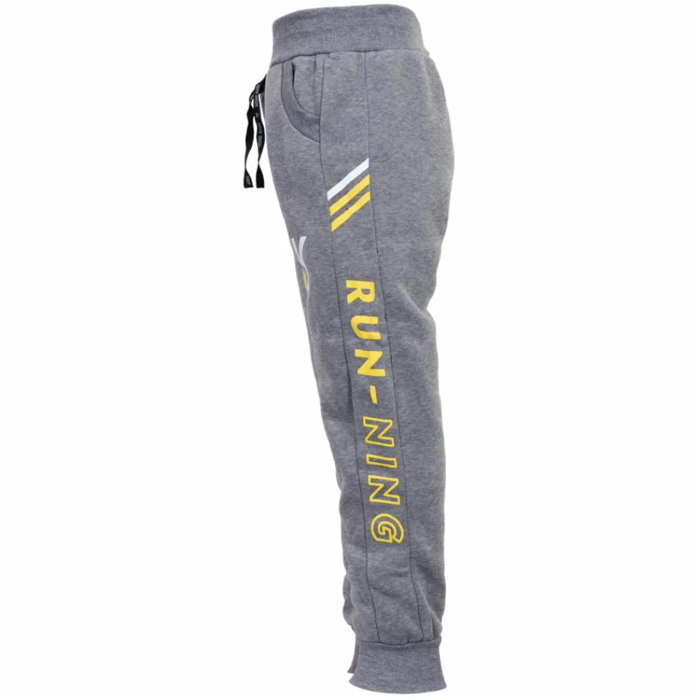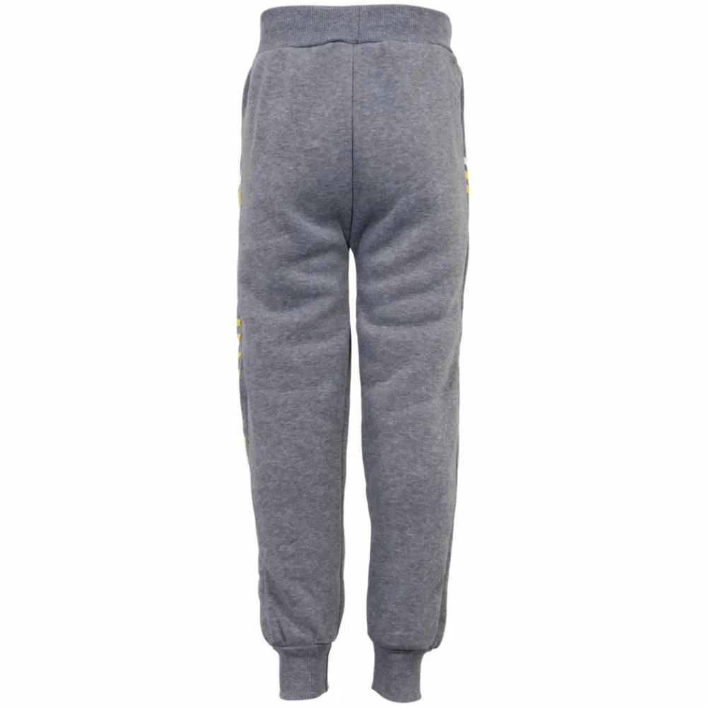 Børne joggingbukser med sidelommer. Bukserne har print ned langs siderne. Bukserne har elastik ribkant ved taljen og ved buksebenets afslutning. Bukserne har bindebånd ved taljen og en børstet inderside.