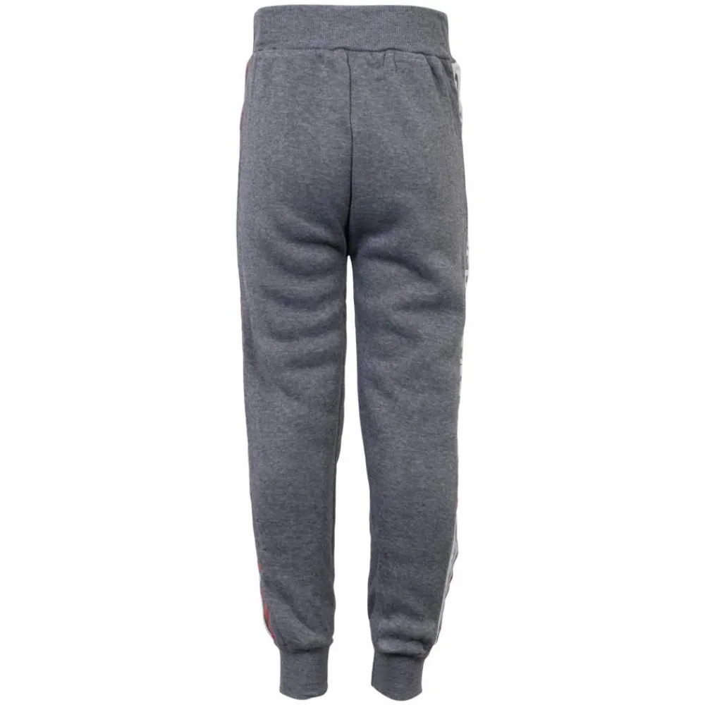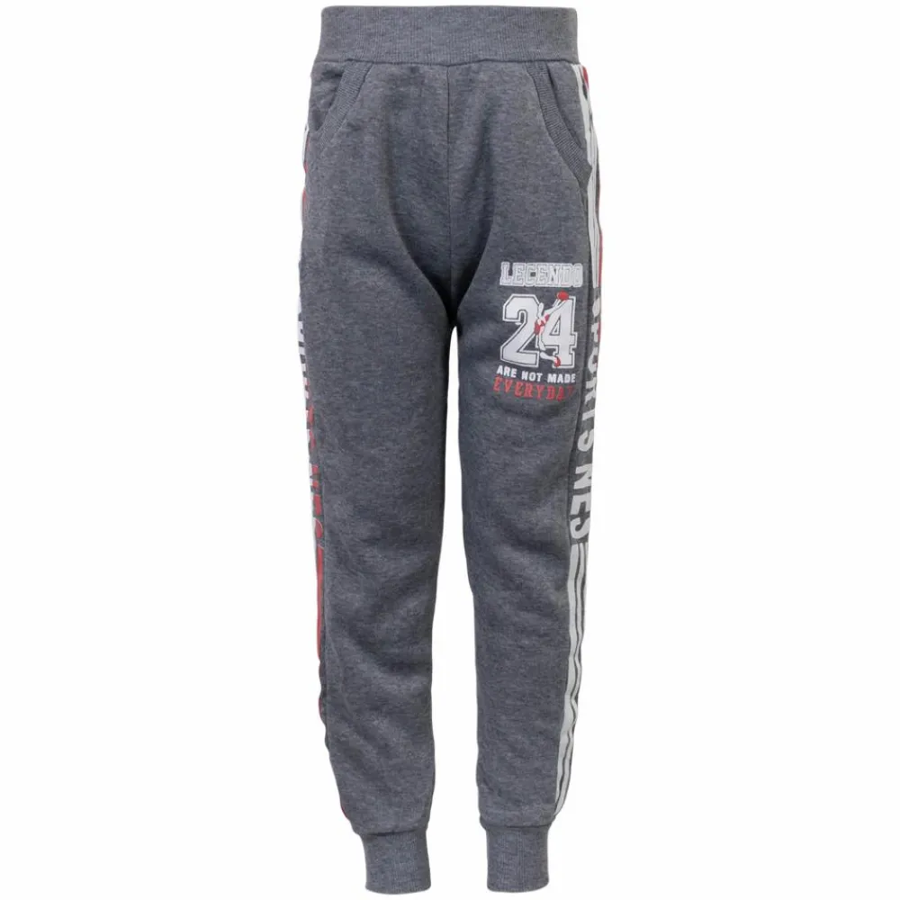Børne joggingbukser med børstet, blød inderside. Bukserne har print langs siderne og på det ene bukseben. De smarte sweatbukser har to sidelommer og elastikrib i taljen samt ved buksebenets afslutning. Perfekte til hverdag og fritid.