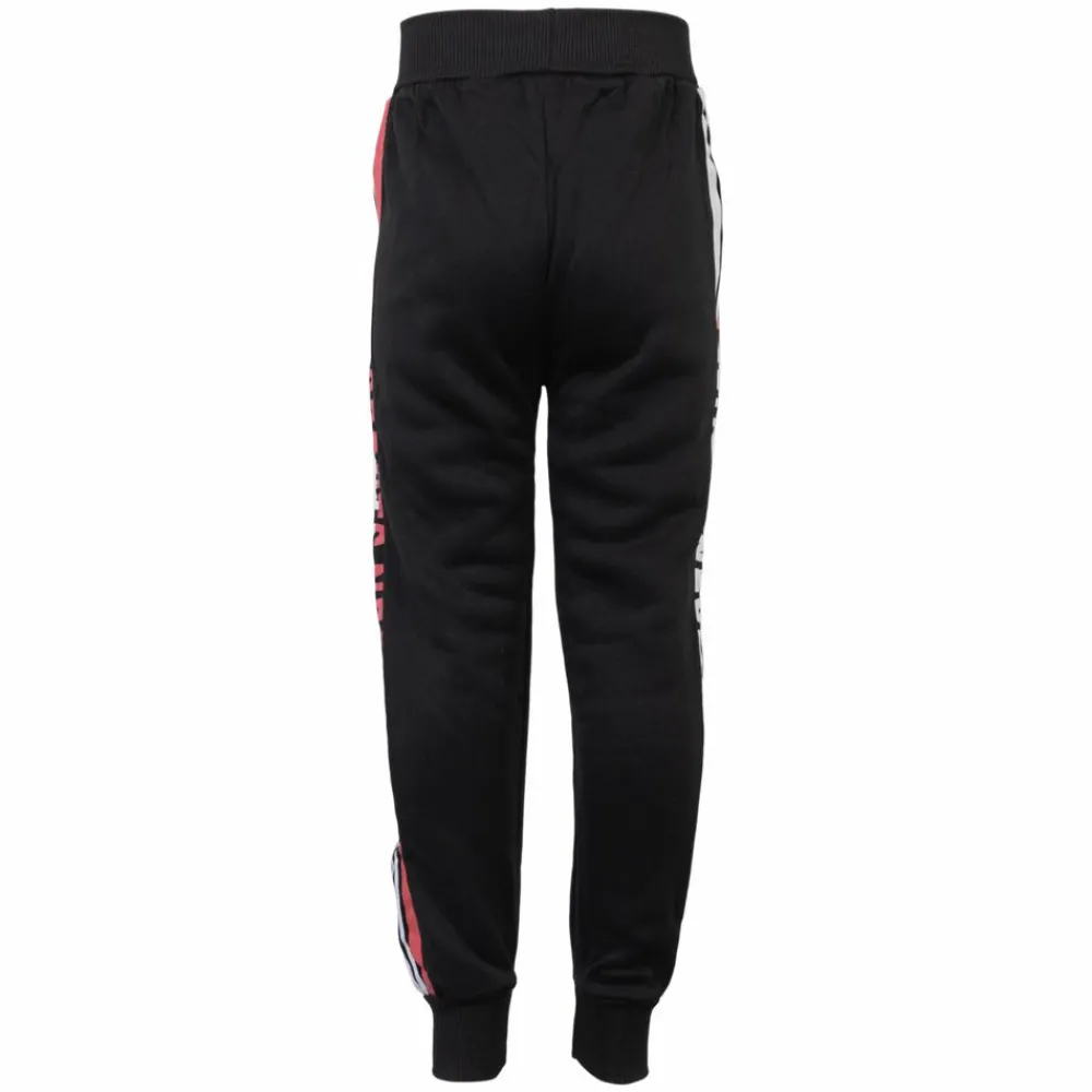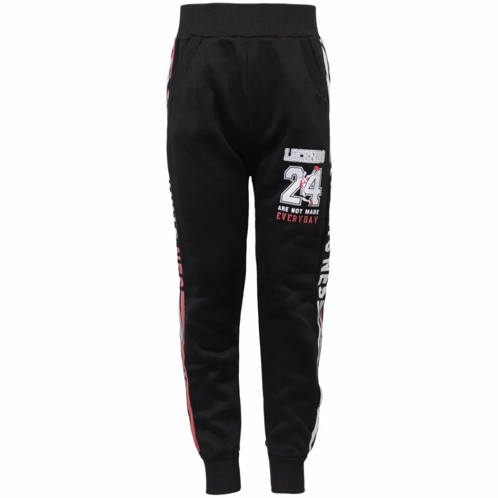Børne joggingbukser med børstet, blød inderside. Bukserne har print langs siderne og på det ene bukseben. De smarte sweatbukser har to sidelommer og elastikrib i taljen samt ved buksebenets afslutning. Perfekte til hverdag og fritid.