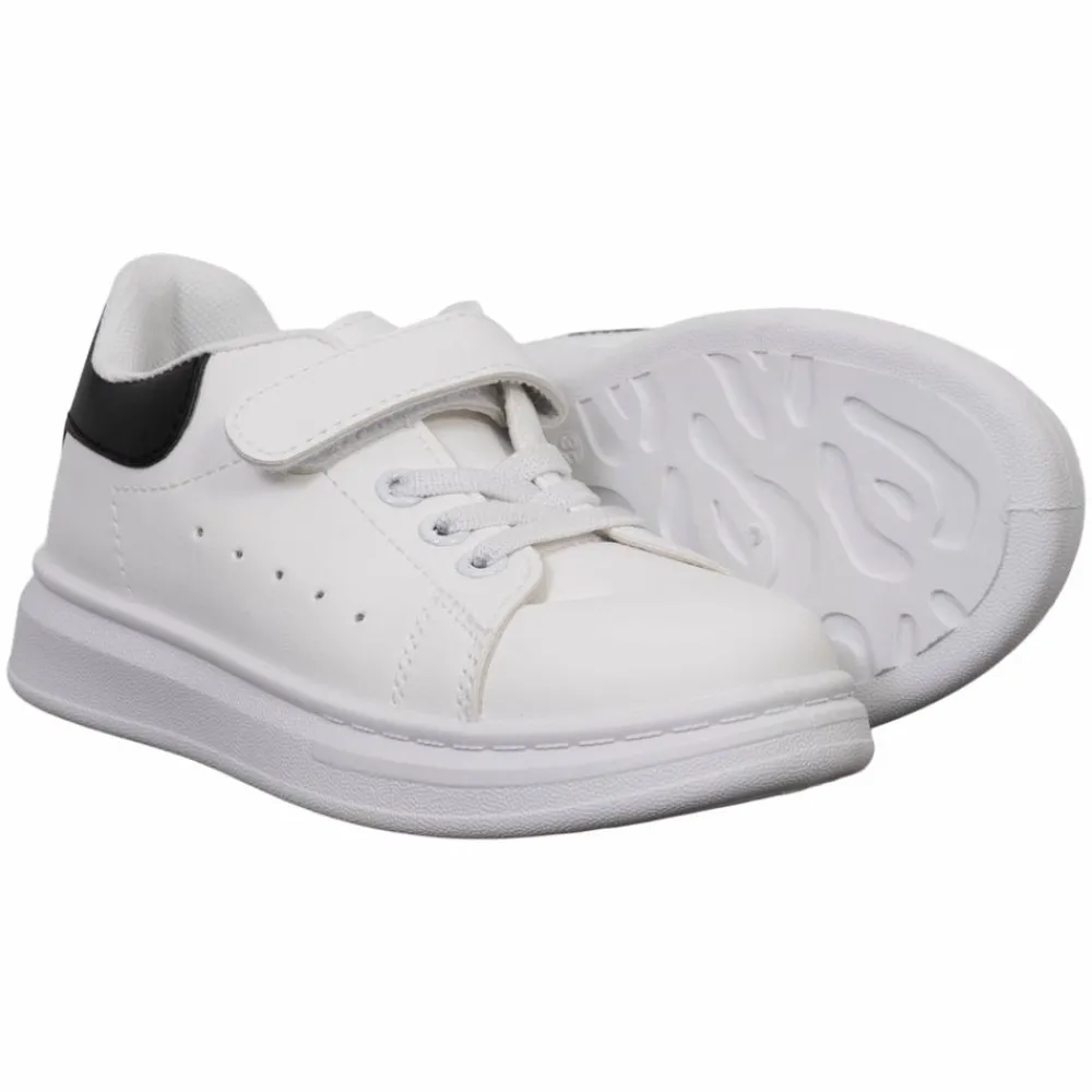 Anyway børnesko med kontrastfarvet hælkappe. De smarte sneakers har snørebånd foran og en praktisk velcrolukning øverst. Skoen har en klassisk sporty stil med små ventilationshuller i siden. Skoene har en skridsikker sål, som sikrer et godt og fast greb i underlaget.