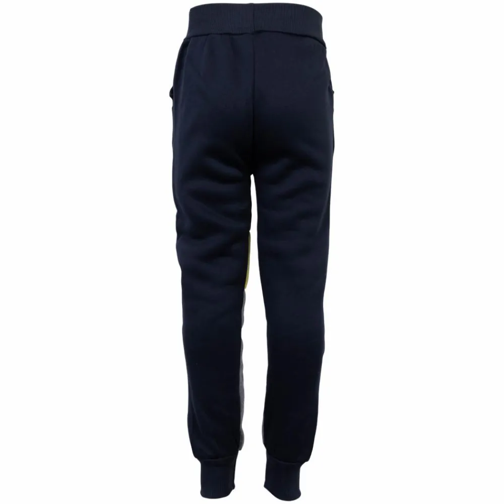 Børne joggingbukser med børstet inderside. Bukserne har blok farver og print på begge ben samt to sidelommer. De smarte sweatbukser har elastikrib i taljen og ved buksebenets afslutning. Perfekte til hverdag og fritid.
