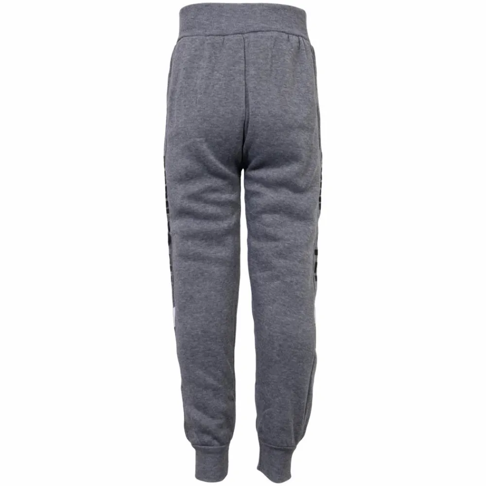 Børne joggingbukser med børstet inderside. Bukserne har print på begge ben samt to sidelommer. De smarte sweatbukser har elastikrib i taljen og ved buksebenets afslutning. Perfekte til hverdag og fritid.