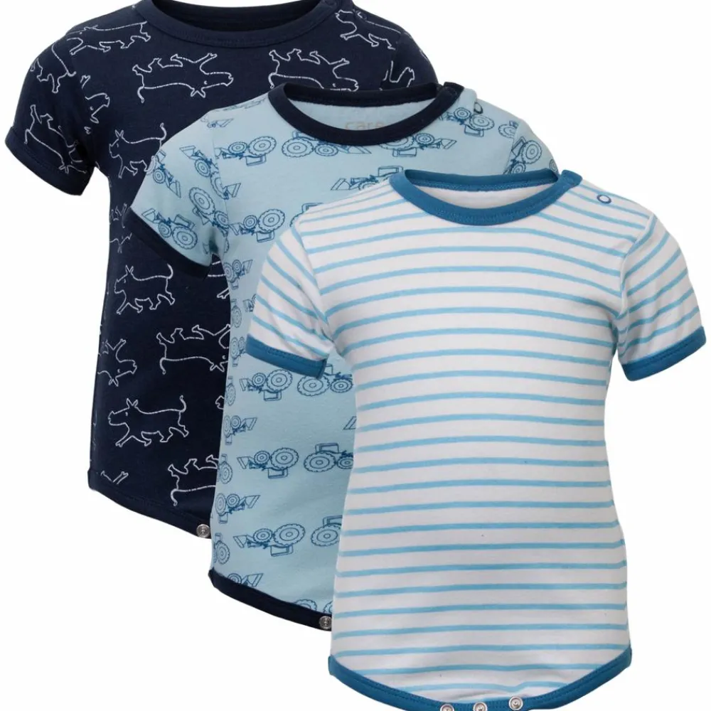 3-pak body med korte ærmer og forskellige all-over prints. Bodyen har trykknapper mellem benene og ved den ene skulder.