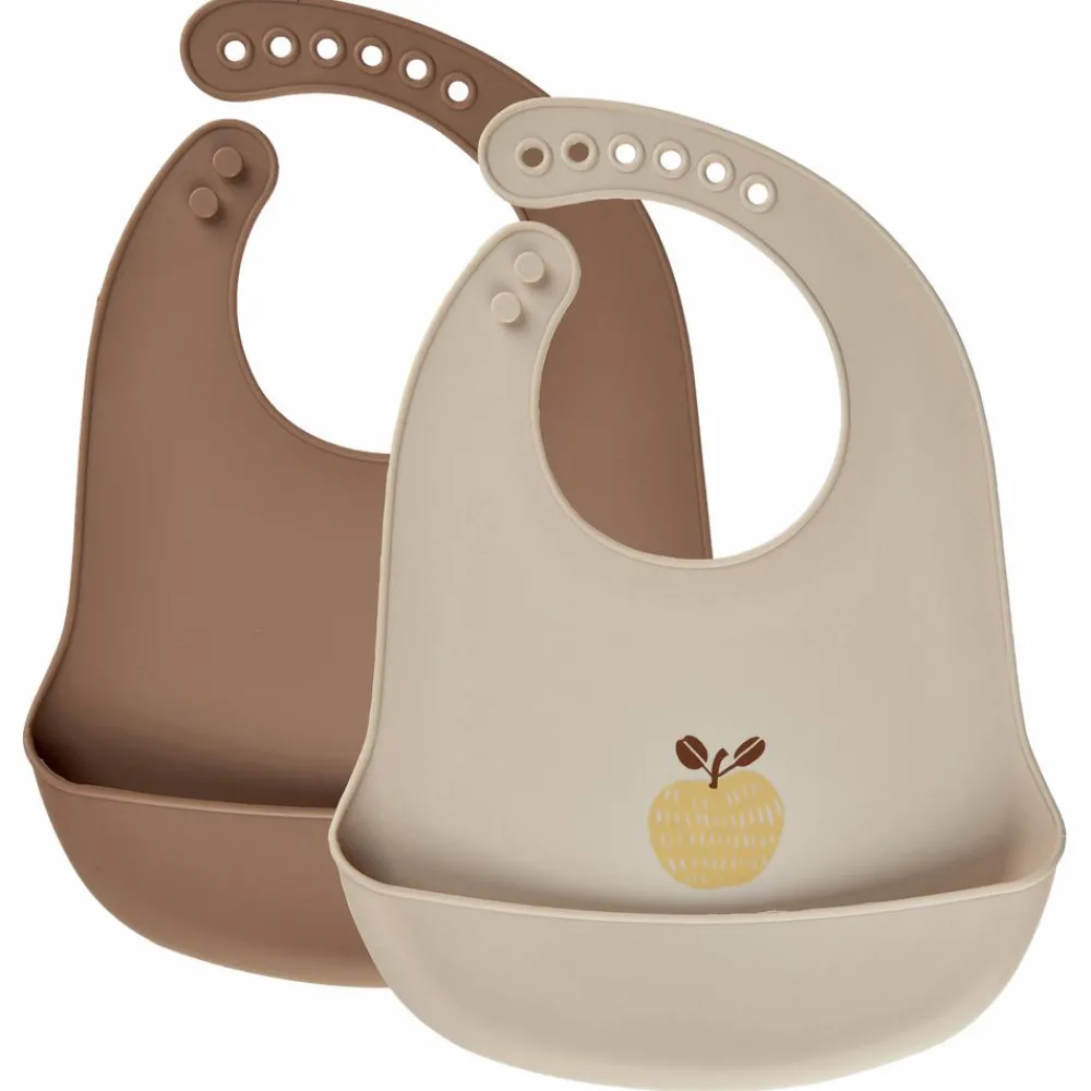 CeLaVi silikone hagesmæk 2-pak. Virkelig smart hagesmække lavet af 100% BPA free silikone så de er lette at rengøre, herudover kan de også tåle at komme i opvaskemaskinen. I nakken er der flere forskellige huller, så hagesmækken nemt kan justeres i størrelsen. Hagesmækken er udformet så den har en “skål” til at gribe alt det, som skulle falde ved siden af. Den ene hagesmæk er med print og den anden ensfarvet. Hagesmækken er testet og godkendt til at have direkte kontakt med fødevarer.