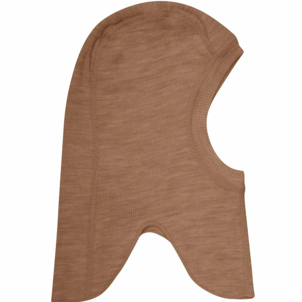 CeLaVi elefanthue i blød rib, lavet i ekstra fin merinould. Huen er et-lags og sidder tæt omkring ansigtet. Huens splitdesign giver barnet mere bevægelsesfrihed og huens forlængede for – og bagstykke sørger for, at kulde og fugt ikke trænger ind på barnets hud.