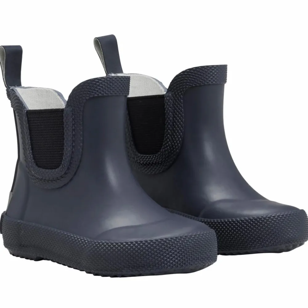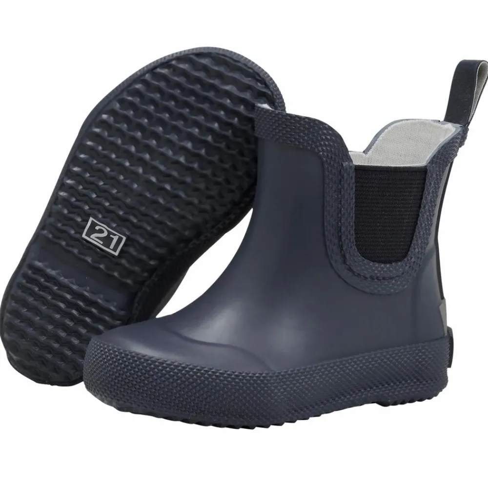 Celavi basis børne gummistøvler. Ensfarvet kort gummistøvle med elastik i siderne og strop bagpå, så den er nem at komme i. Støvlen er i naturgummi og har Celavi refleks logo bagpå. Modellen er smallere i hælen, så børnene bedre kan bevæge sig i den. Vi anbefaler, at længden af støvlen svarer til fodens længde plus en finger (1-1,5 cm), så der er plads til at have tykke sokker på.