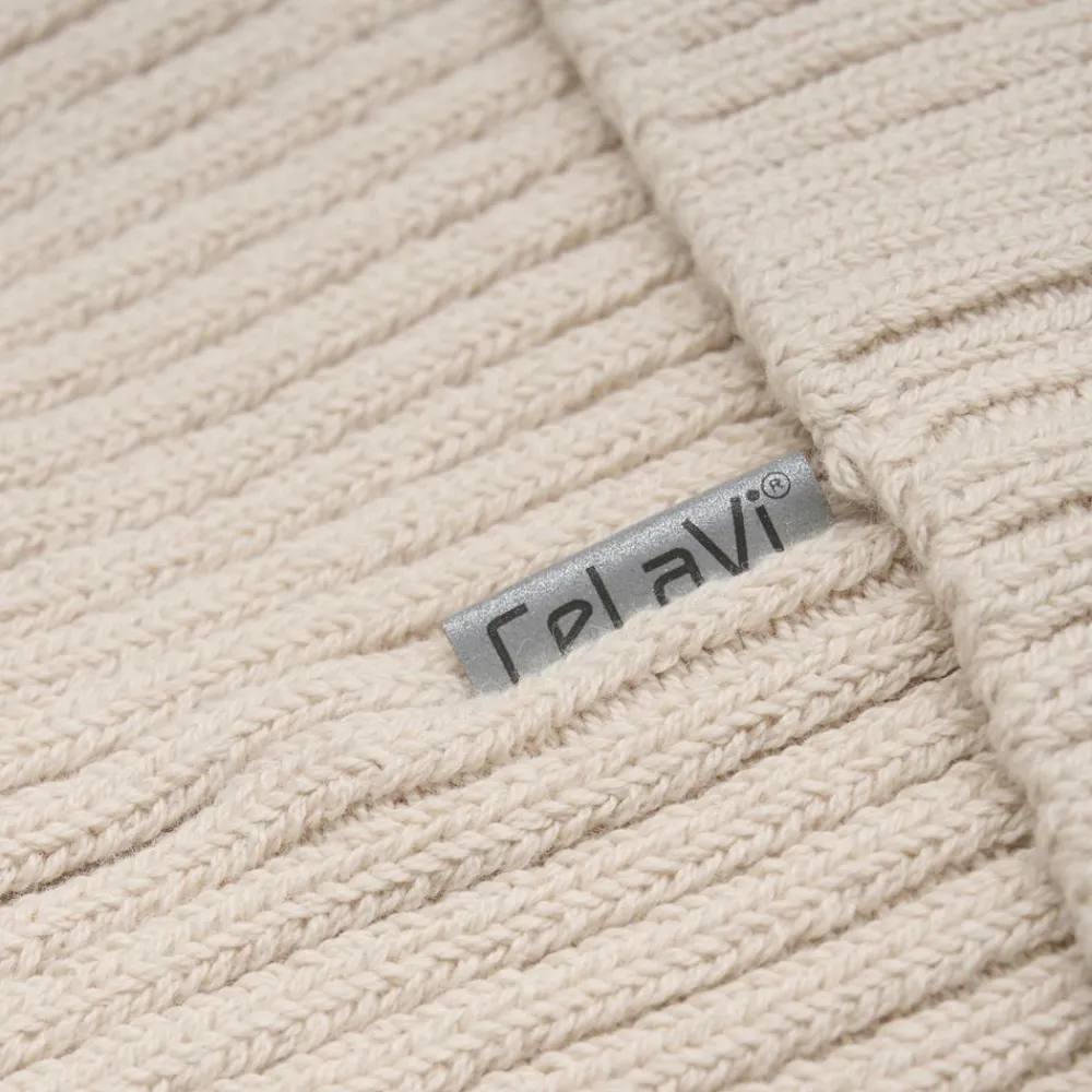 CeLavi hue i strik. Huen har et CeLaVi refleks på bagsiden.