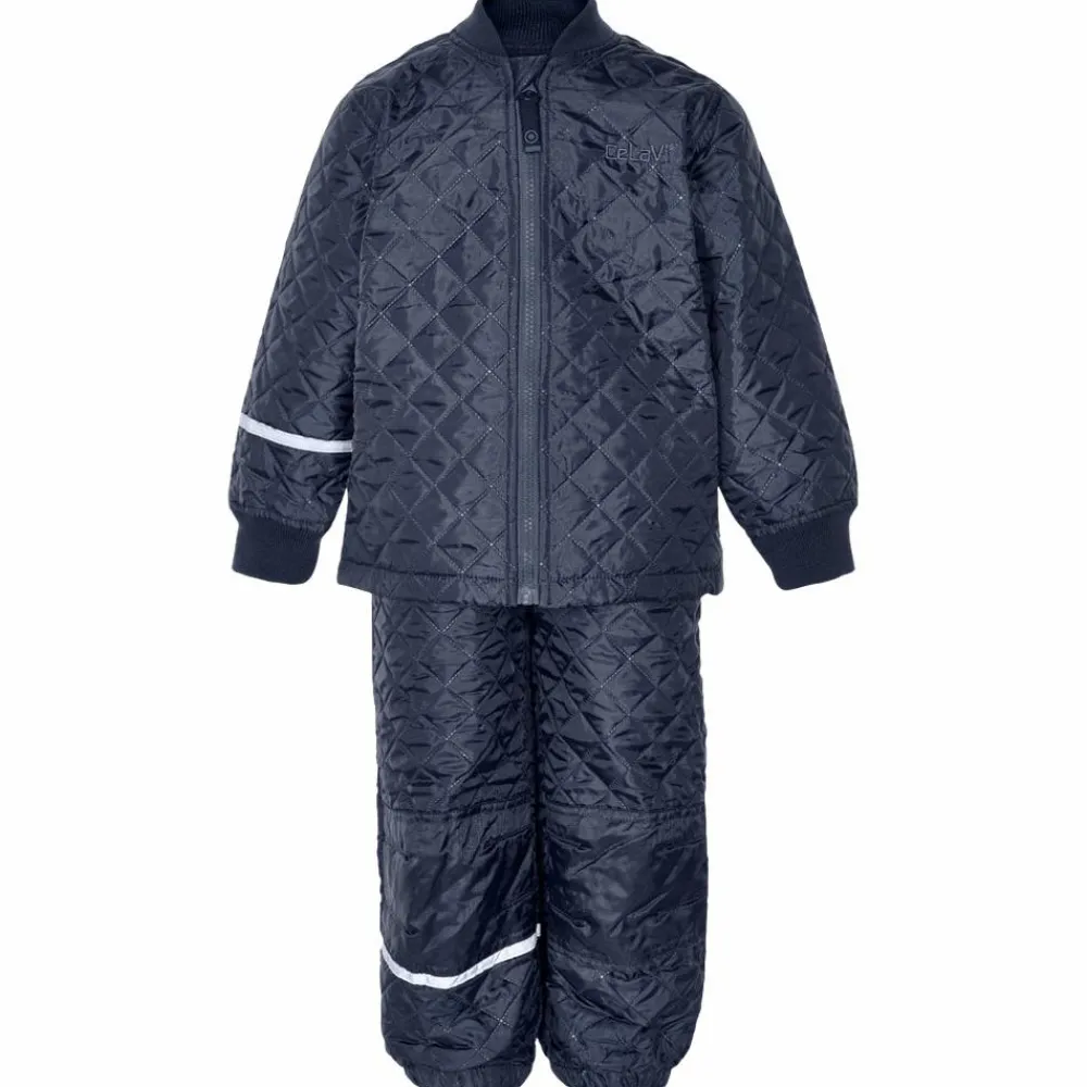 CeLaVi børne termosæt. Lækkert termosæt til baby og børn bestående af termojakke og termobukser. Jakken har en gennemgående lynlås og praktisk hagebeskytter og uundværlig refleks på det ene ærme. Yderligere har jakken justerbar elastik i bunden, samt ribkant ved hals og ærmegab. Der er en indvendig vindstolpe i jakken. Bukserne har elastik i linningen og ved anklerne. Bukserne har refleks rundt om det ene ben, og termobukserne har også en praktisk forstærkning på både knæ og numse. Det fine og uundværlige termosæt bestående af termojakke og termobukser er vindtæt.