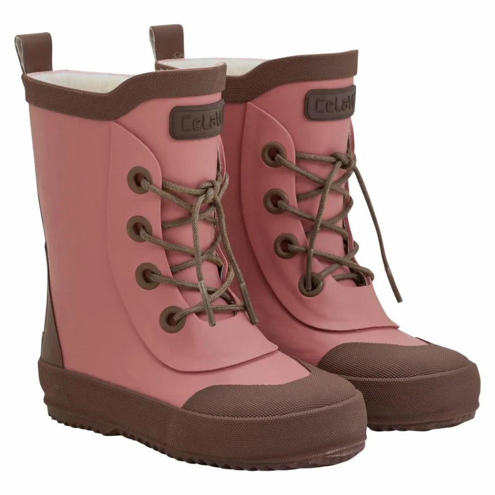 Celavi Termostøvler. De smarte gummistøvler fra CeLaVi er lavet i 100% vandtæt naturgummi og børnestøvlerne har et varmt uldfor indvendigt. Støvlerne har en fin snøre detalje fortil. Vinterstøvlerne har refleksdetaljer rundt om støvlen og CeLaVi logo. Vi anbefaler 1 cm i voksetillæg.