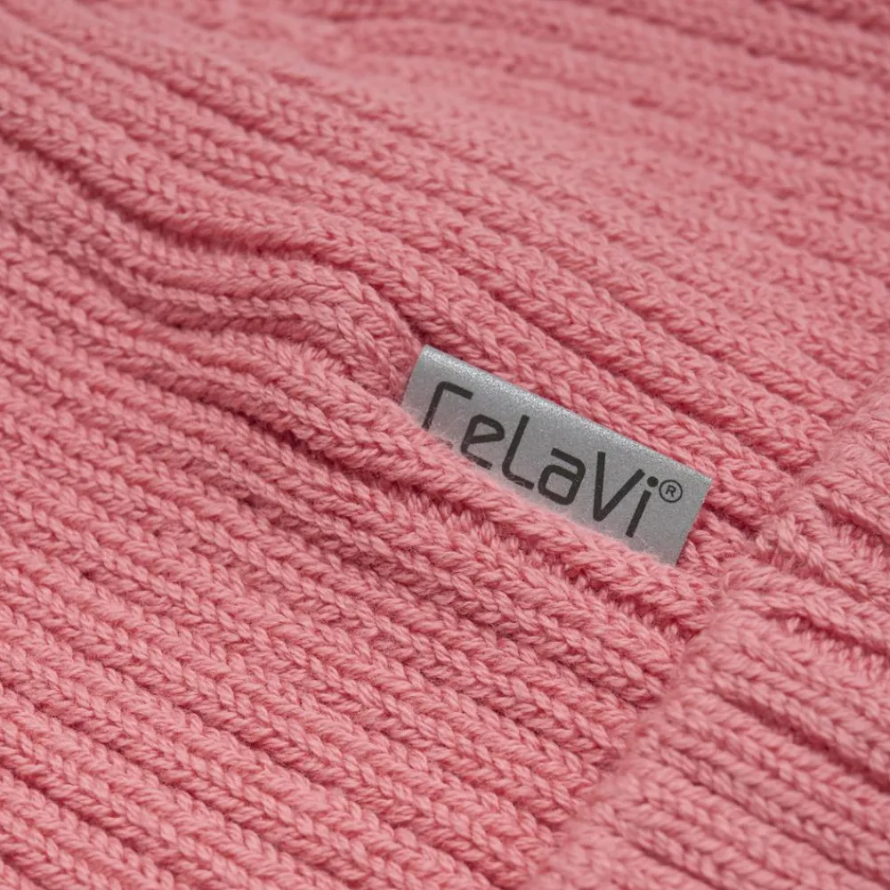 CeLavi hue i strik. Huen har et CeLaVi refleks på bagsiden.