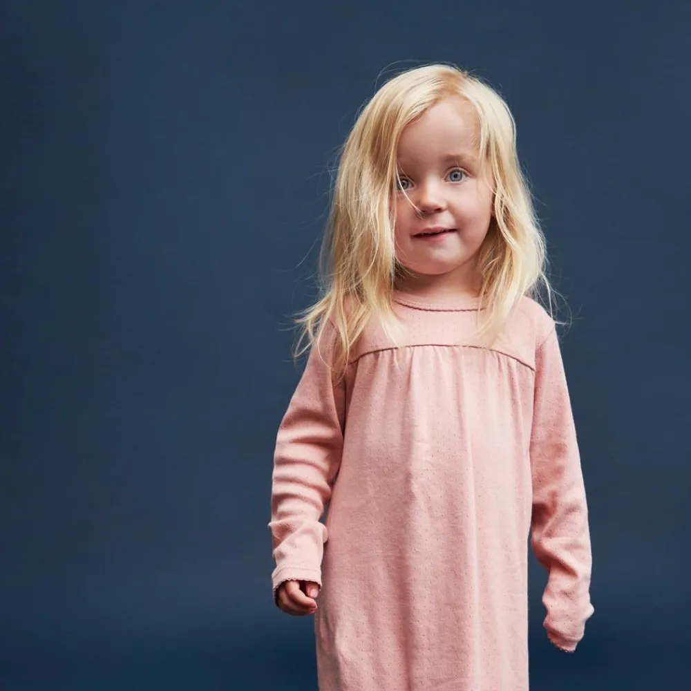 Natkjole i pointelle. Natkjolen har lange ærmer og er lavet af bomuld.
