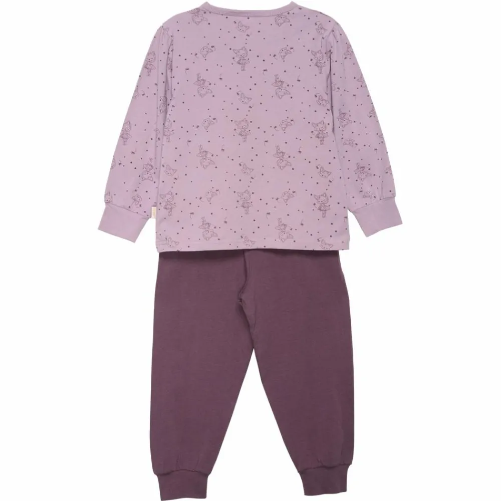 Nattøjssæt lavet af strækbart og blødt materiale. T-shirten har lange ærmer, rib ved håndleddene og et all-over-print. Bukserne er ensfarvede, har rib i anklerne og elastik i taljen.