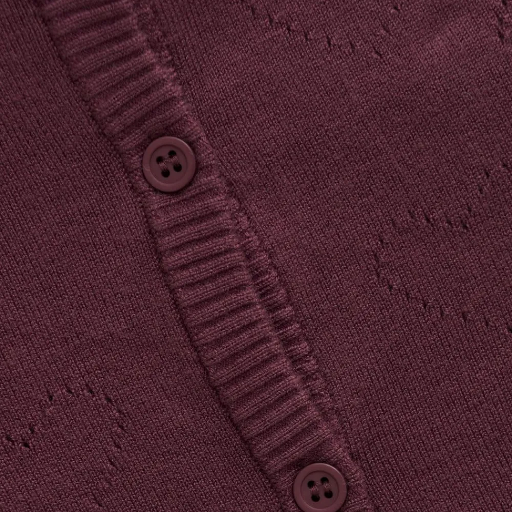 Creamie cardigan med gennemgående knapper. Den fine cardigan har et fint strikket hulmønster med hjerter foran. Den har ribkanter i alle åbninger og er lavet i en fin, tynd kvaliltet.