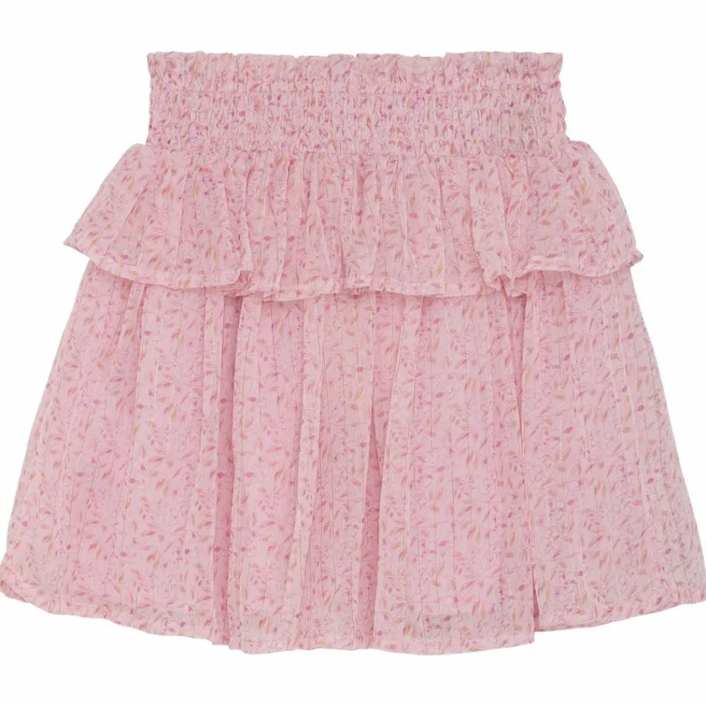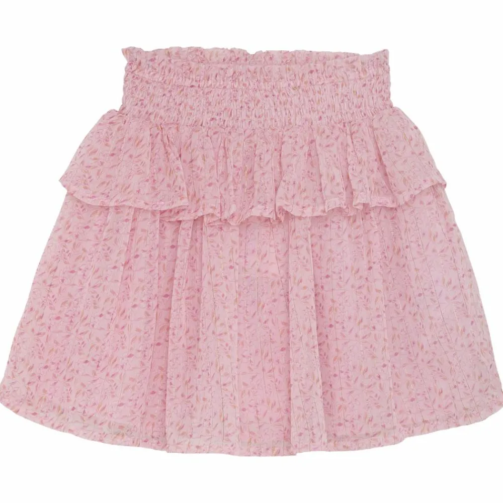 Creamie nederdel med blomstret mønster og metalliske lurex tråde. Nederdelen har flotte flæser og smockdetalje i taljen, der gør den behagelig at bære.