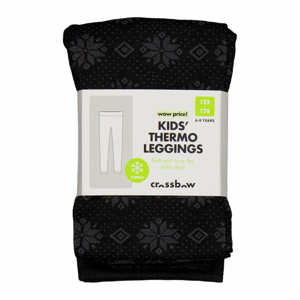 Crossbow thermo børne leggings med fleece inderside. De har et all-over-print af snefnug, er dejlig bløde og har en bred elastisk kant i taljen, som optimerer perfekt pasform. ideelt som skiundertøj eller til andre aktiviteter i kolde tider.