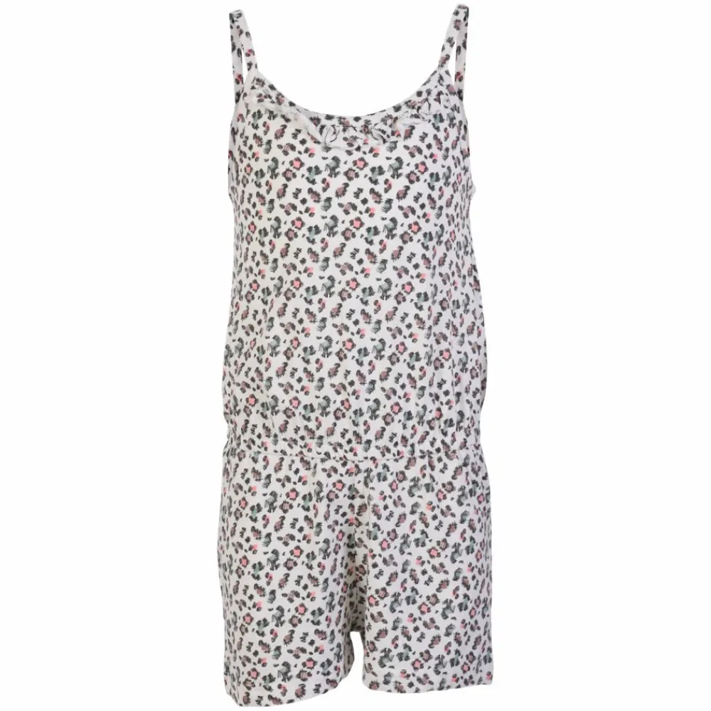 Crossbow pige sommer jumpsuit shorts/stroptop. Sød jumpsuit i all-over print med flæse detaljer ved halsen, justerbar tynde stropper samt elastik i taljen.