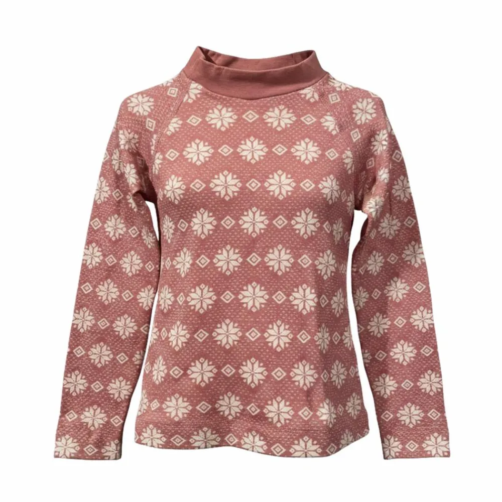 Denne termoundertrøje i farven Rose Tan kombinerer blød varme med et roligt vintermønster. Den høje hals skærmer mod træk, og raglanærmer giver fri bevægelse. Den lette kvalitet i 95% polyester og 5% elastan leder fugt væk og hjælper kroppen med at holde en behagelig temperatur, uanset om det gælder skituren, skolegården eller sofaen. Brug den som første lag under jakke eller termosæt.