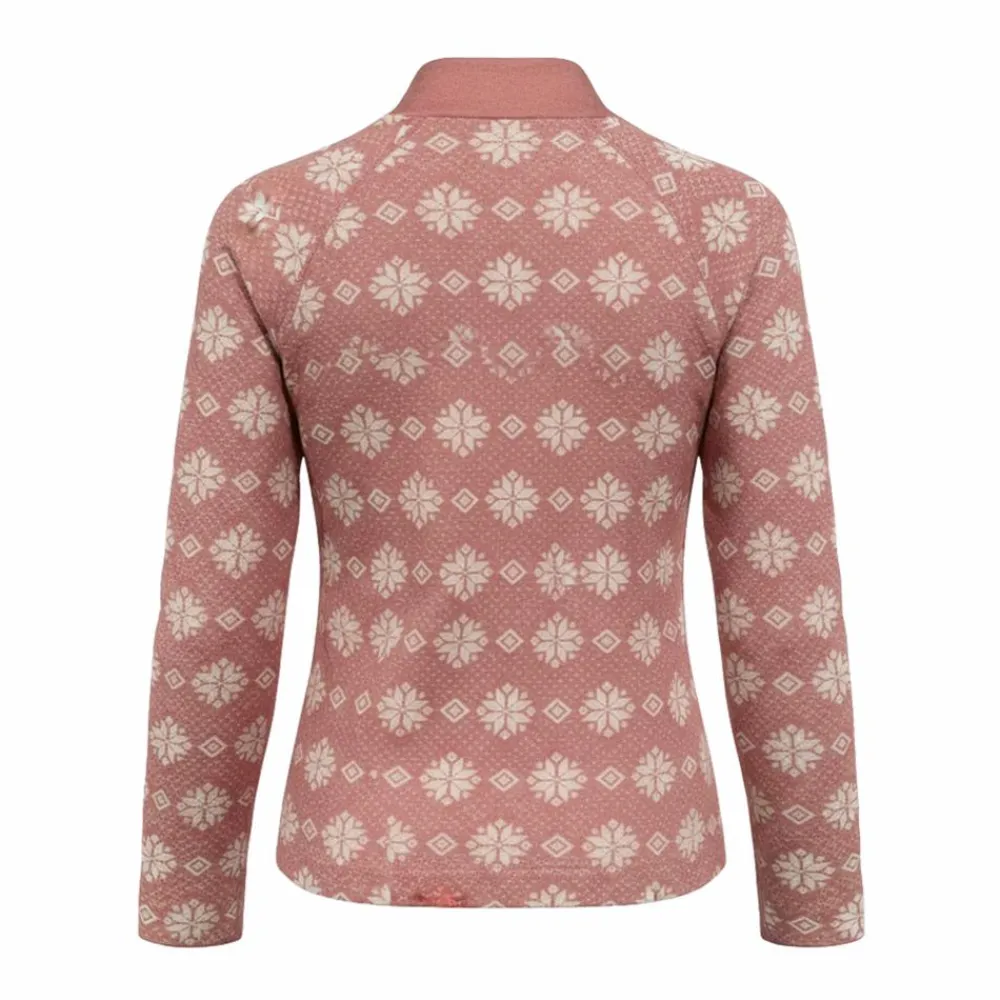 Pasformen er tæt uden at klemme, så den føles naturlig hele dagen. Det fine snefnugsmønster gør den også pæn alene, når aktiviteterne rykker indenfor. Den er skabt til den aktive pige, der vil have en pålidelig base, som ikke fylder, men leverer varme, bevægelsesfrihed og komfort. Suppler med mere varmt skiundertøj for et komplet sæt til kolde dage.