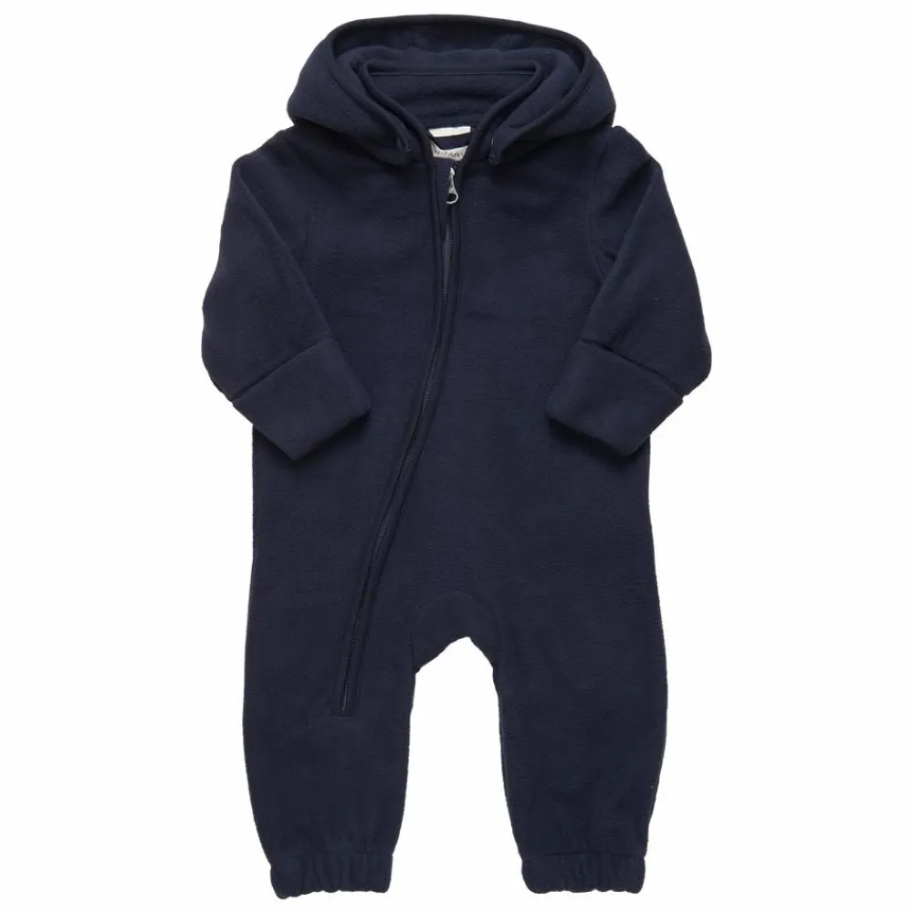 En Fant fleecedragt til baby og børn. Praktisk fleece heldragt til børn med en hætte, der er aftagelig med knapper. Dragten har en lynlås, som stopper ved højre ben. Den forlængede lynlås gør det let at klæde dit barn af og på. Dragten har elastik i bunden, som gør at dragten tilpasser sig om anklerne. Heldragten har en fin detalje med elastik i på ryggen. Fleecen er med lange ærmer og der er mulighed for ombuk ved håndleddet og derved lukke af hvor kulde og blæst.
